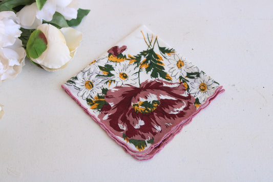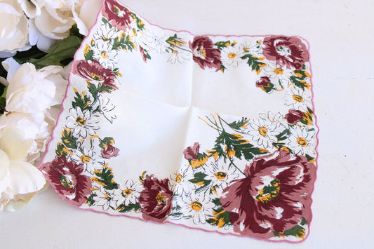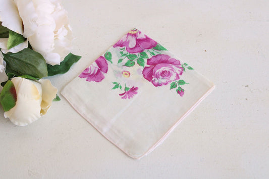 $ 8.00 USDVintage 1950s Pink Purple Roses Handkerchief