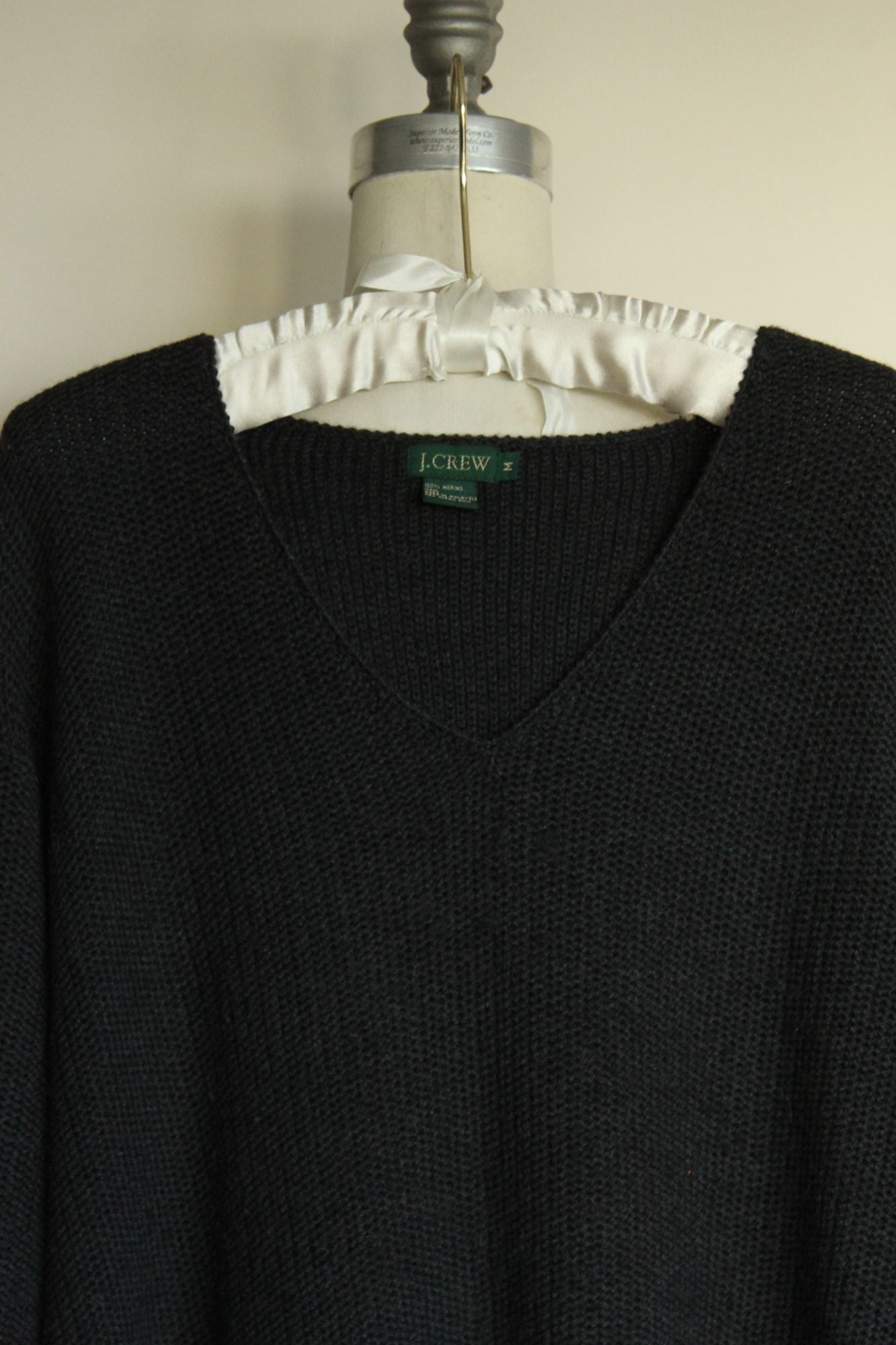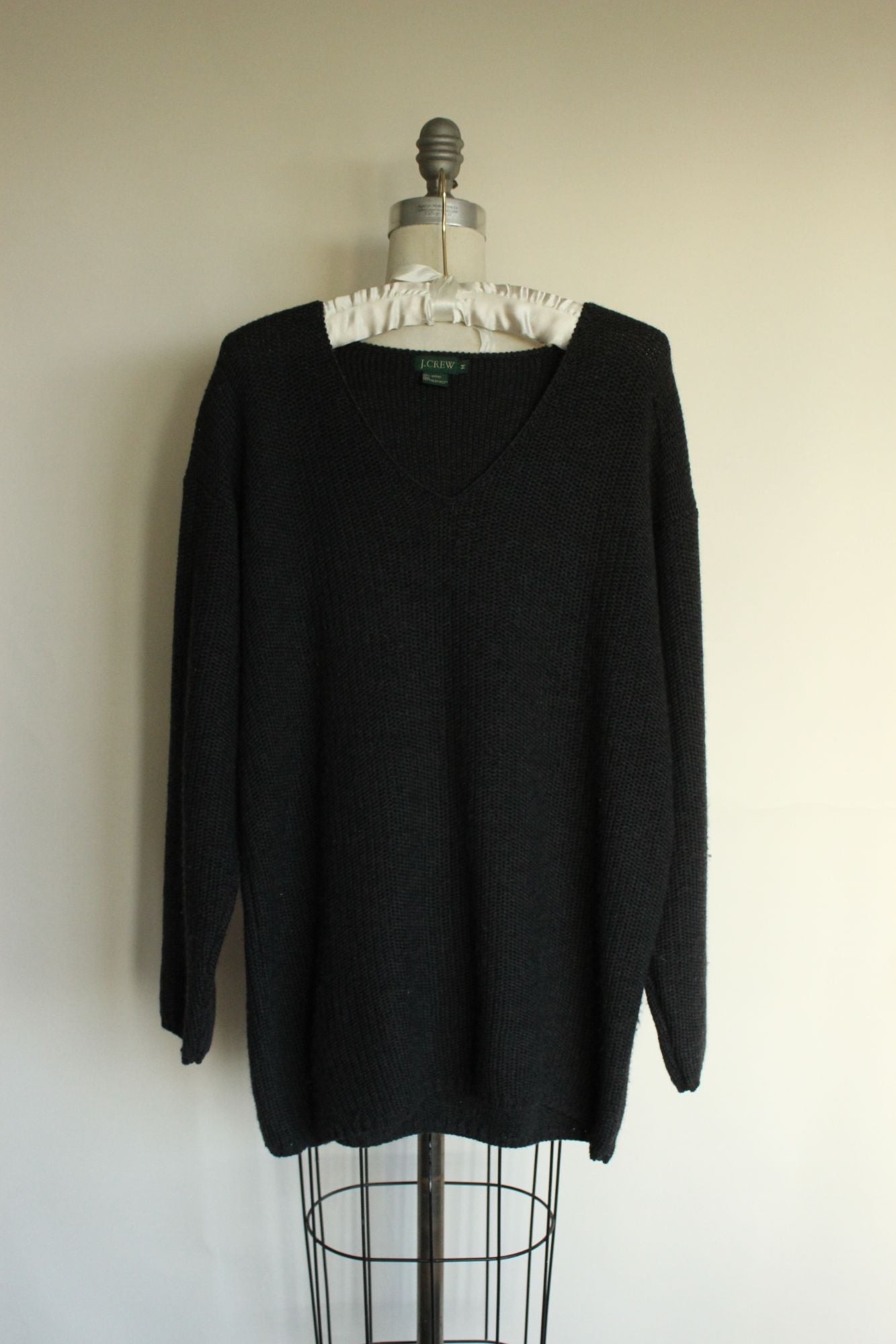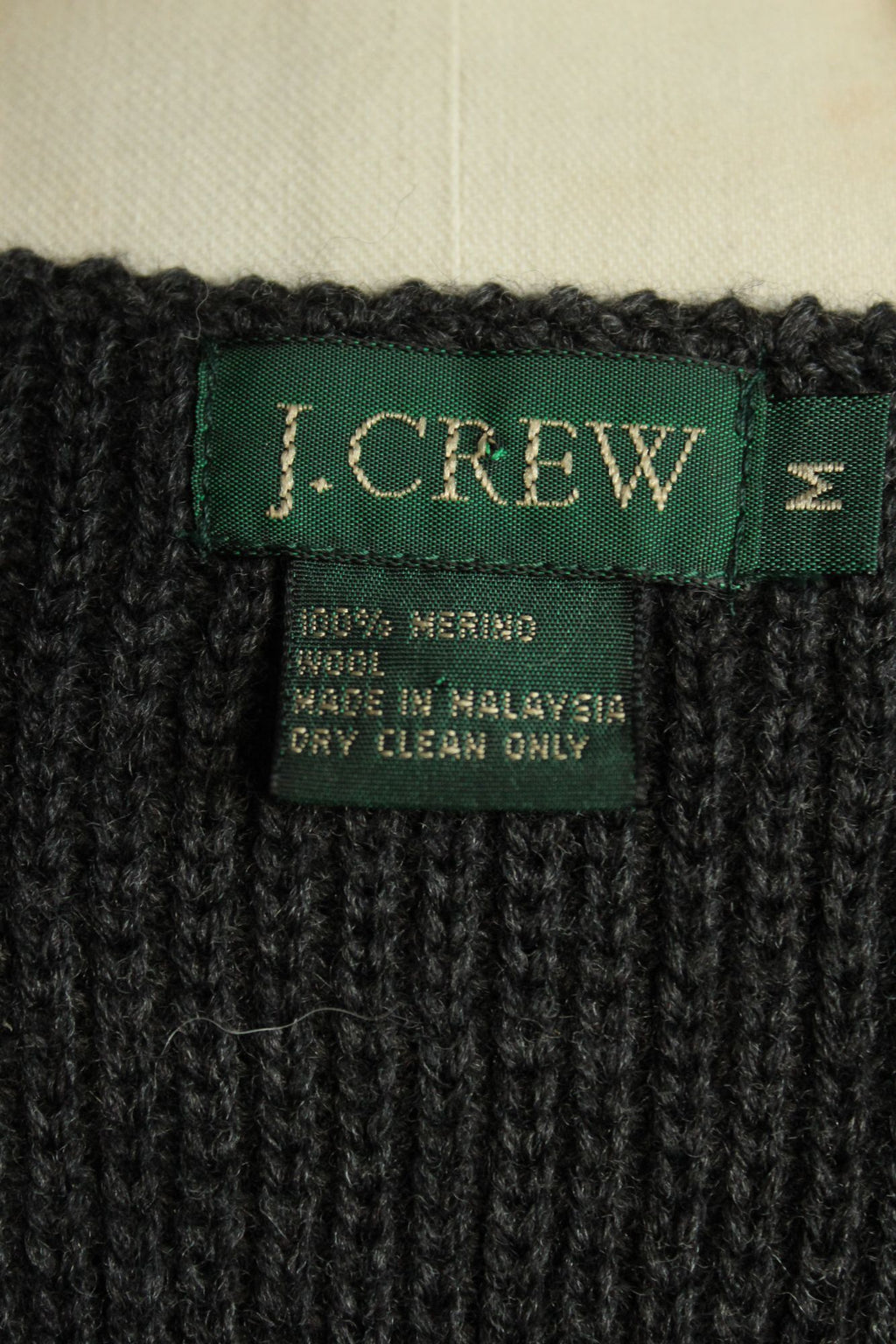 Classic men's sweater from J Crew in a dark gray merino wool knit. Size medium. V neck. Excellent preowned condition. One or two minor snags in the knit, see photos for an example.