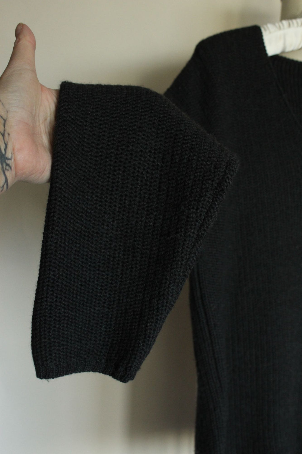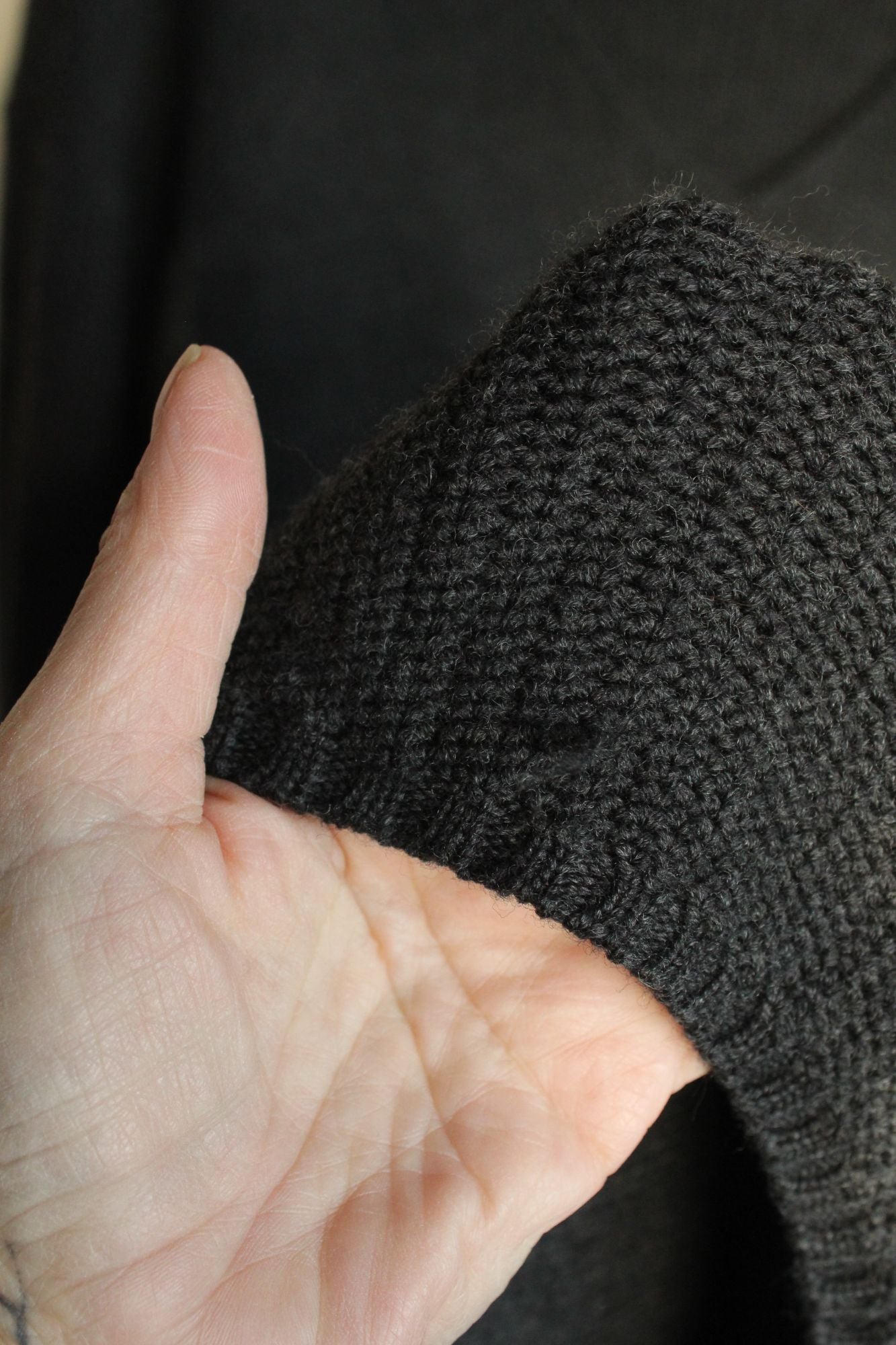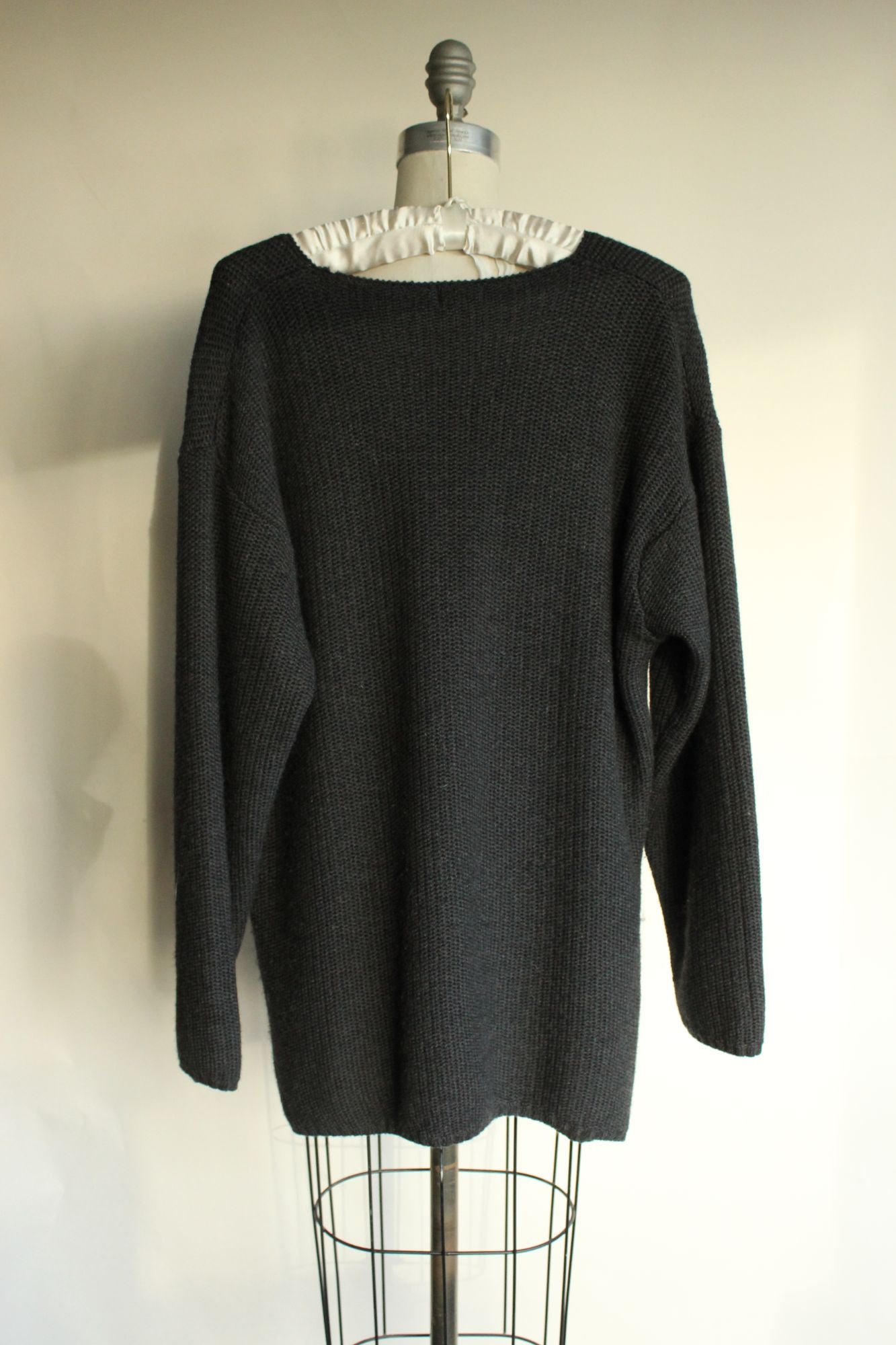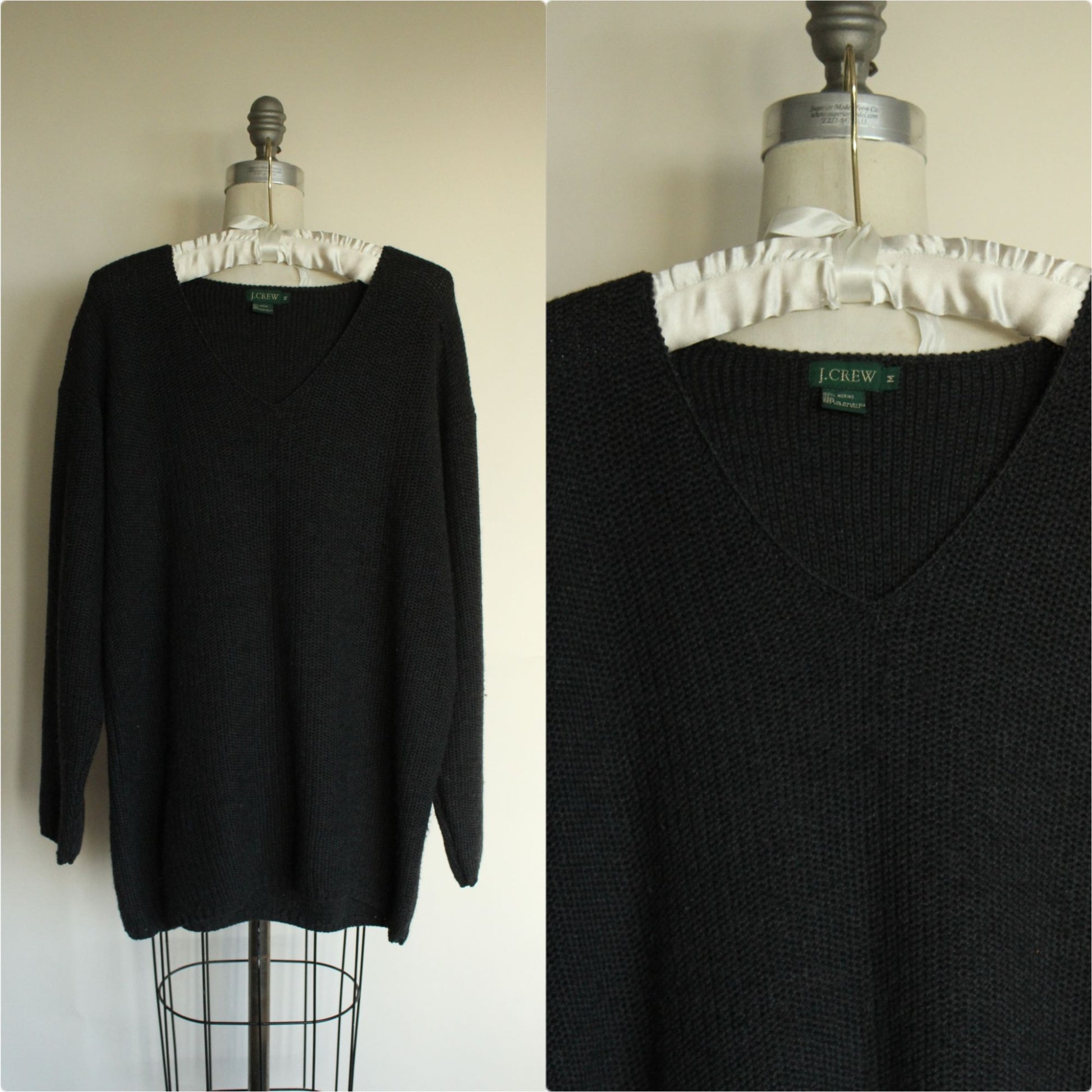Classic men's sweater from J Crew in a dark gray merino wool knit. Size medium. V neck. Excellent preowned condition. One or two minor snags in the knit, see photos for an example.
