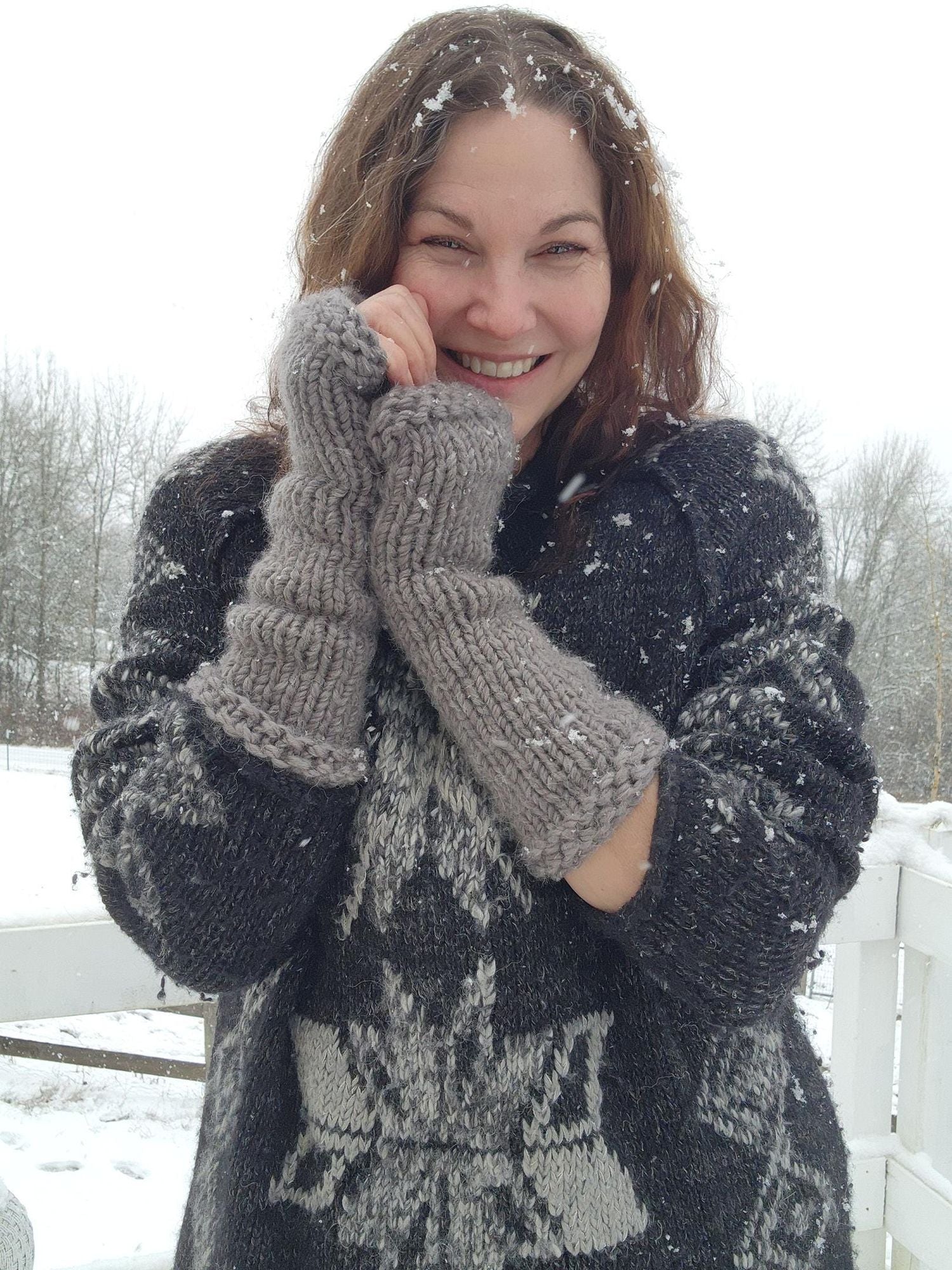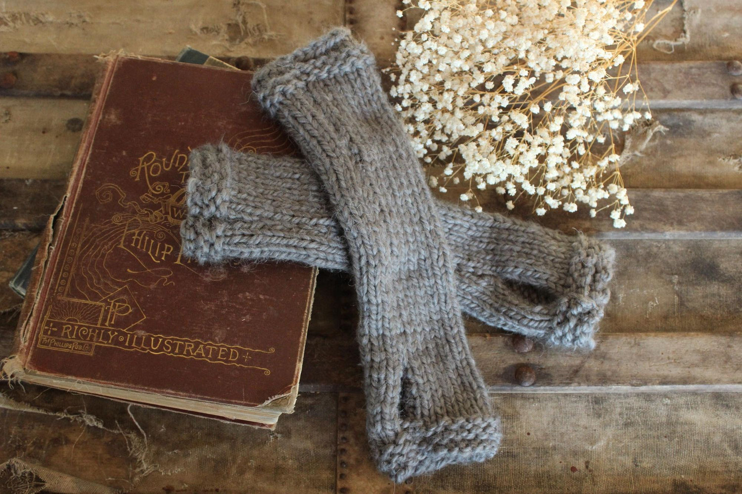 Gorgeous knit fingerless gloves or armwarmers. Hand knit by me with a soft medium gray yarn . I'm calling these the "Scottish Fog" Gloves. Approx 3.5" wide across the wrist and extra long at 15" length, with a lot of give for a comfortable fit. Lightweight and incredibly soft. One of a kind.