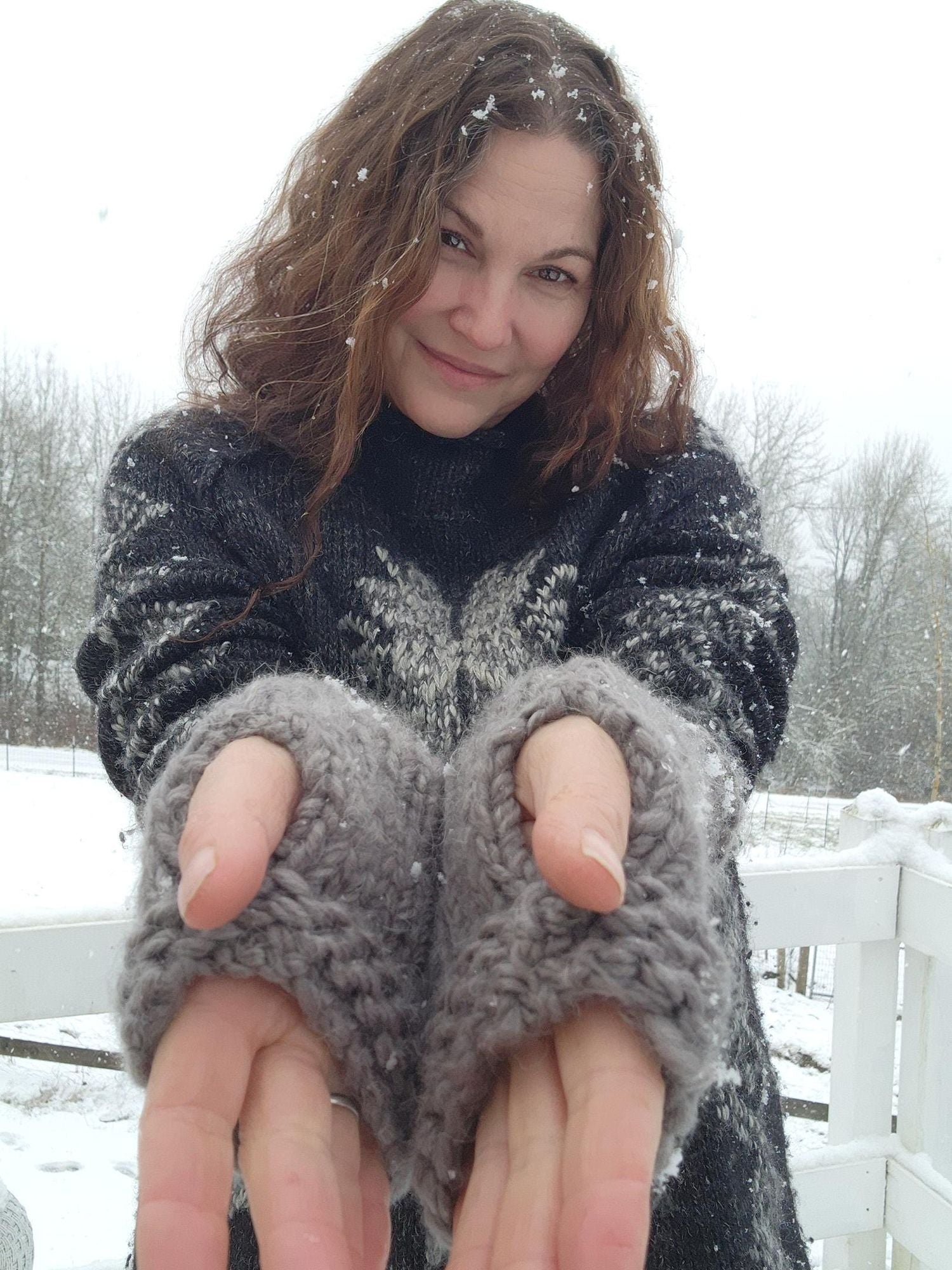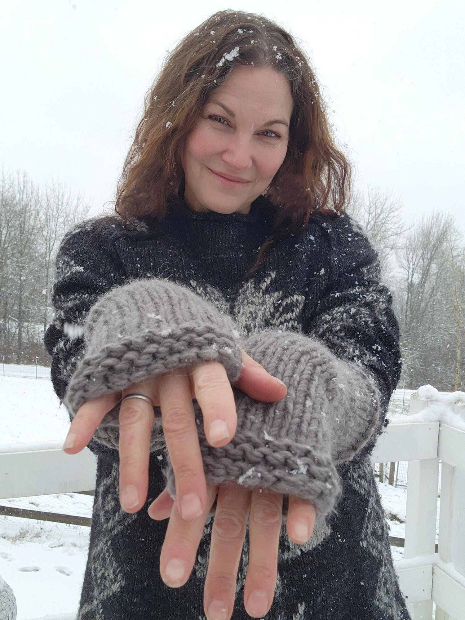"Scottish Fog" Hand Knit Fingerless Gloves