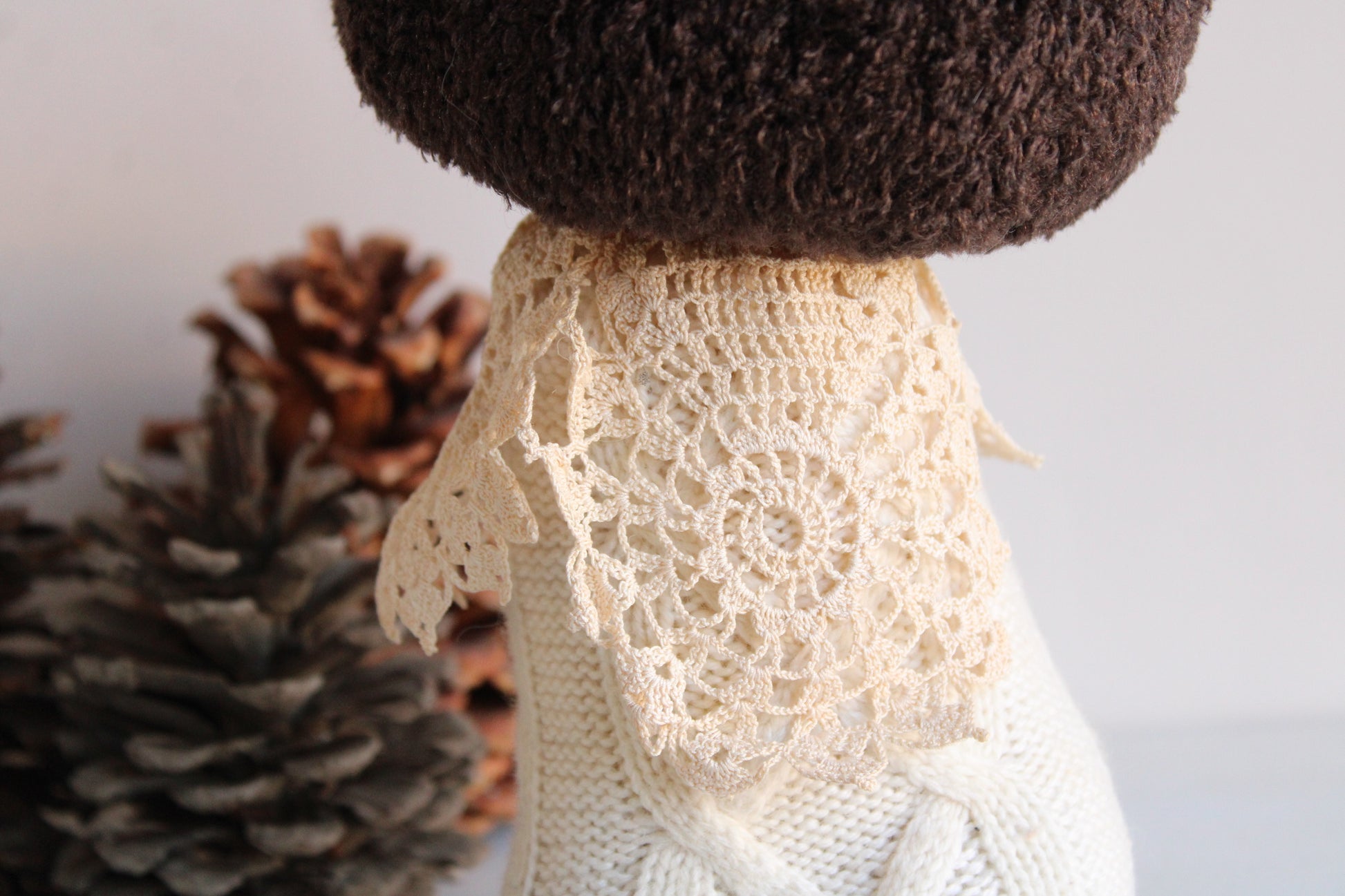 "Victorian Woods" Handcrafted Sweater Toadstool with Vintage Lace
