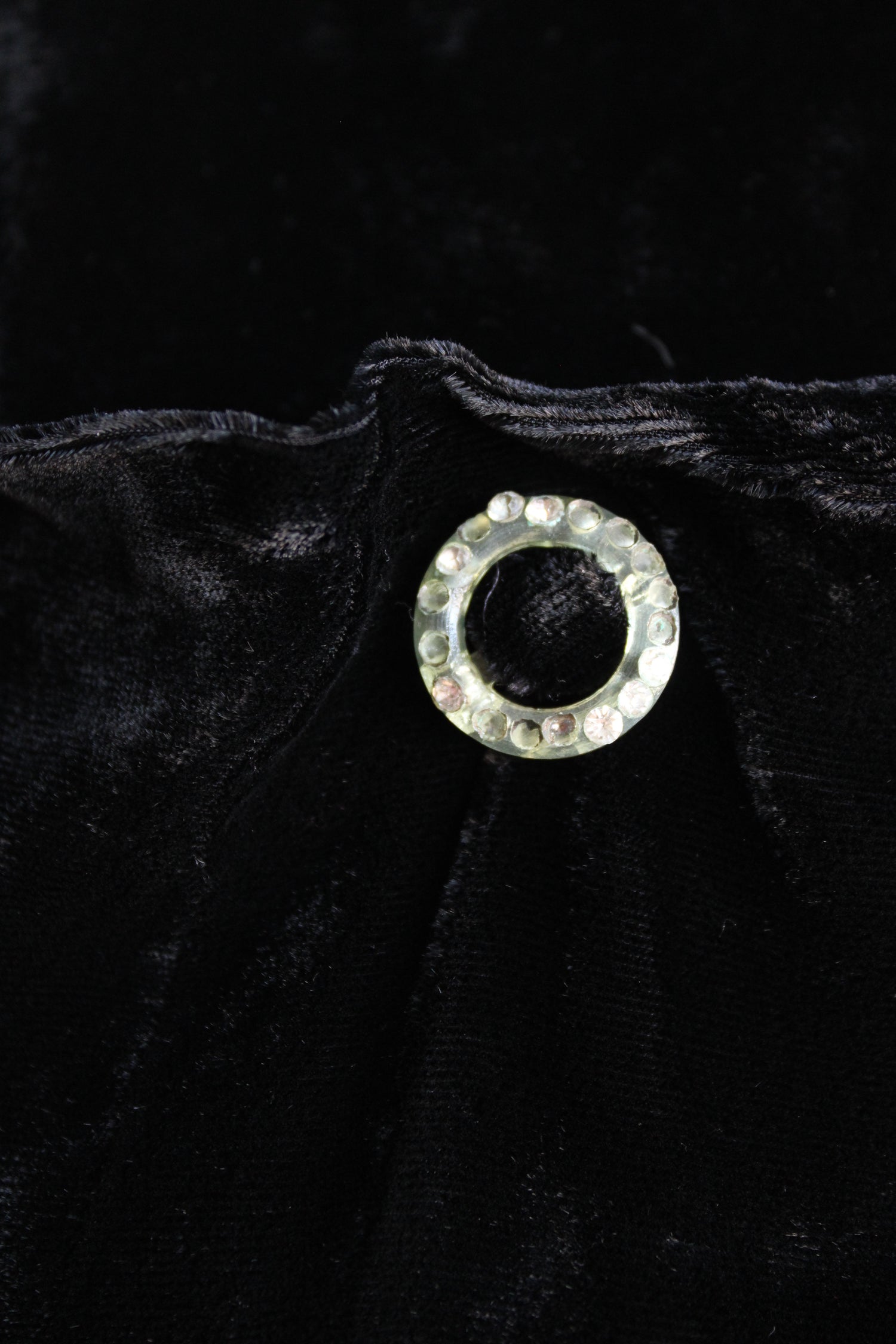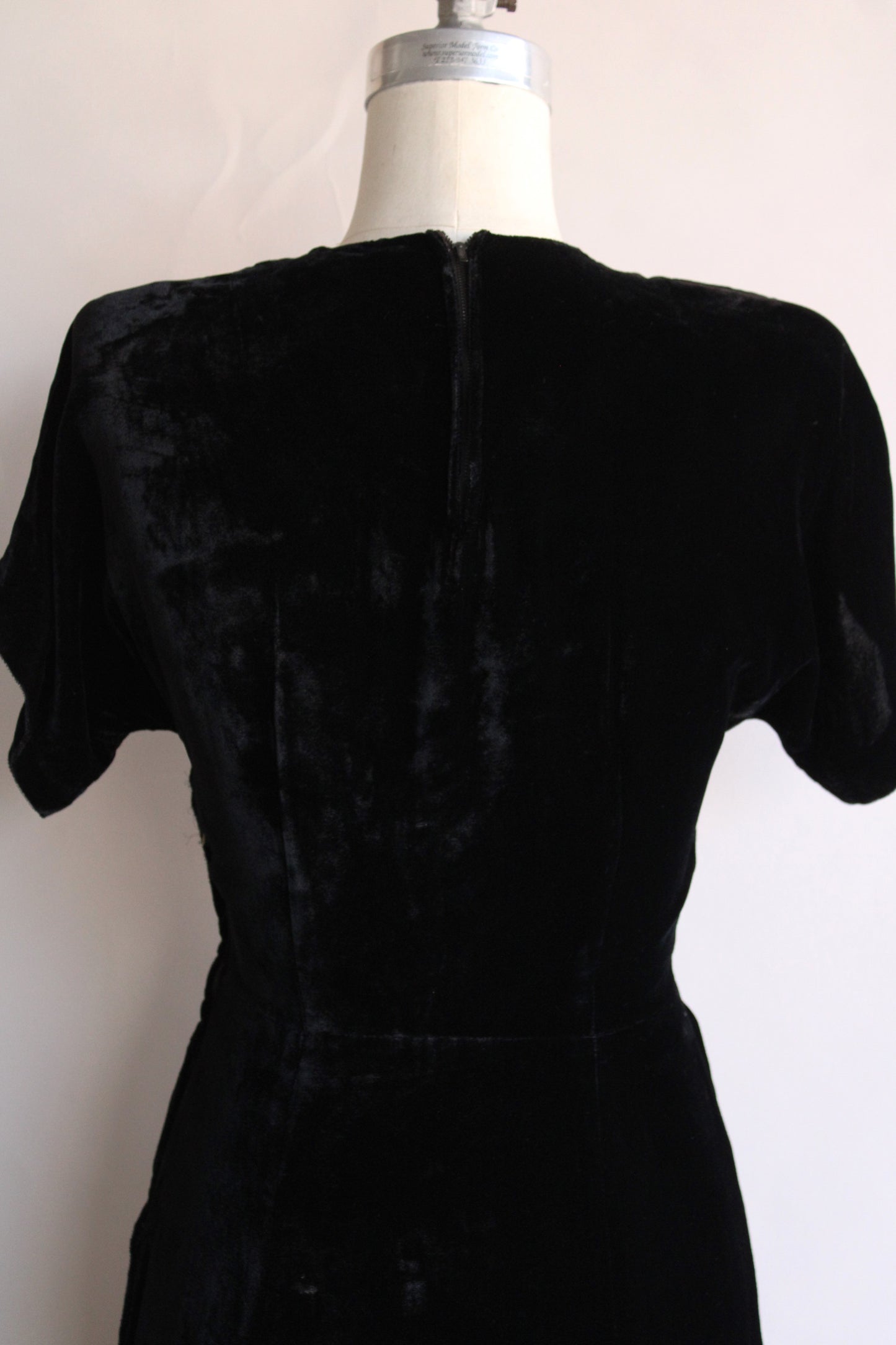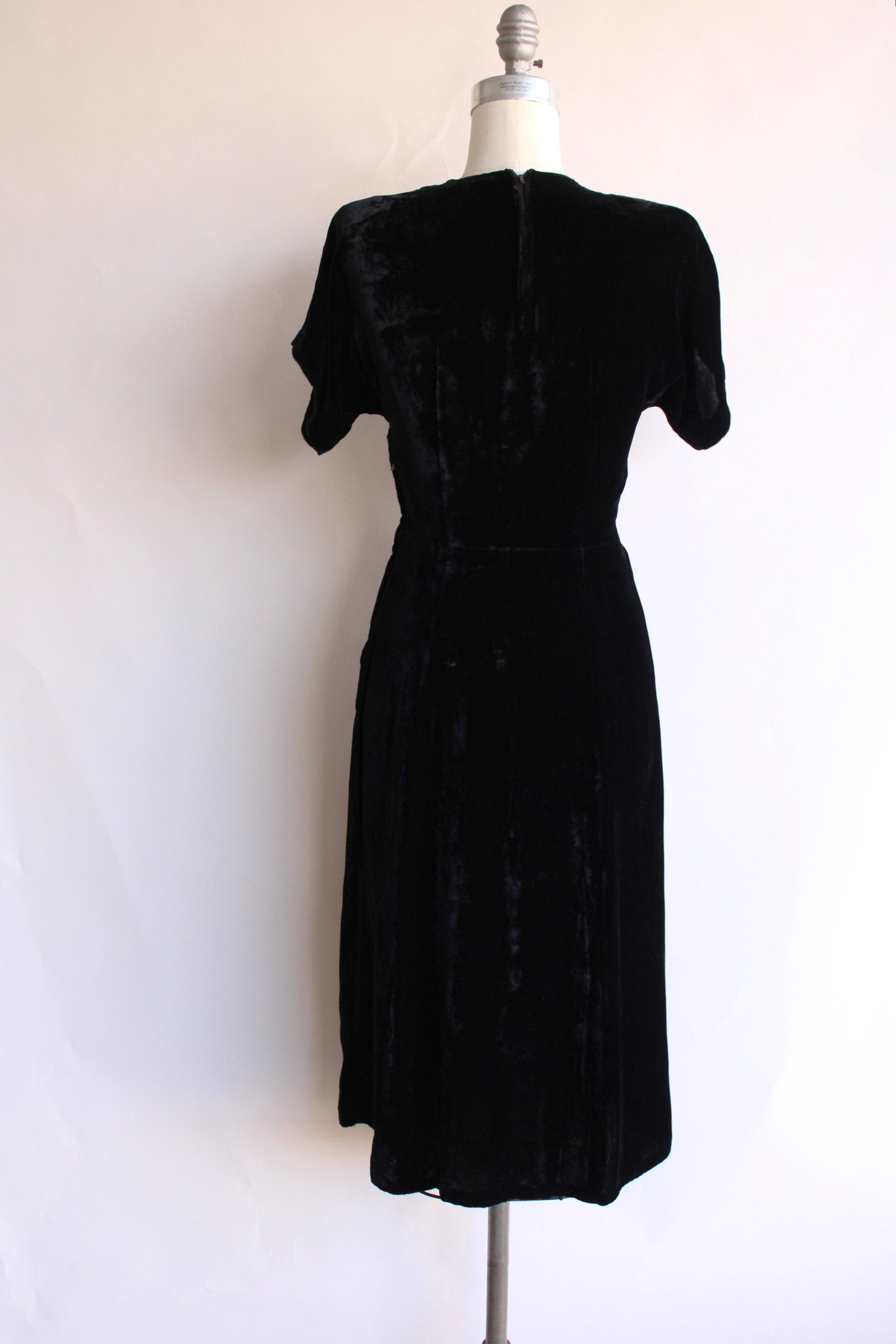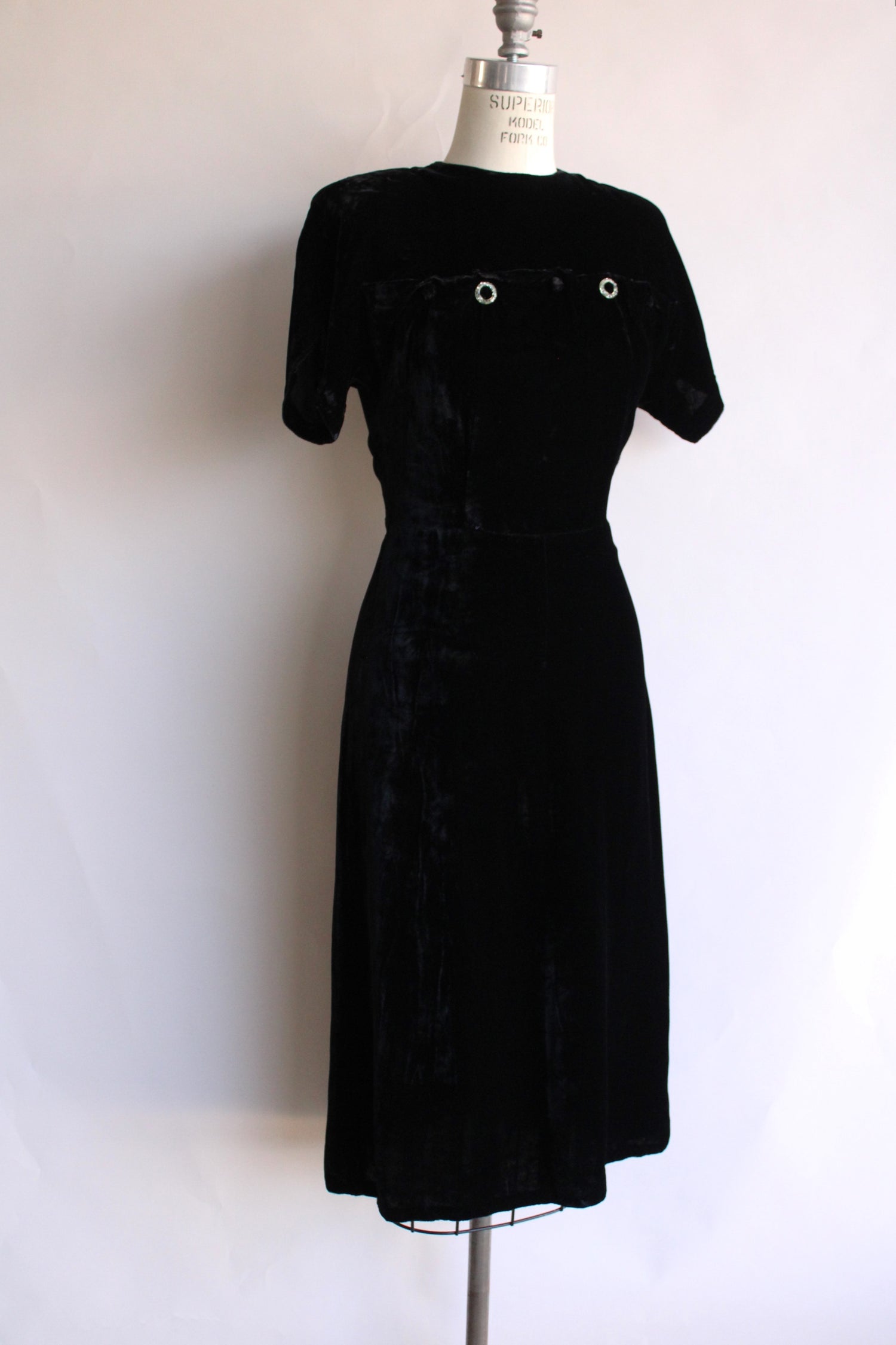 Vintage 1940s Black Velvet Dress with Rhinestone Details
