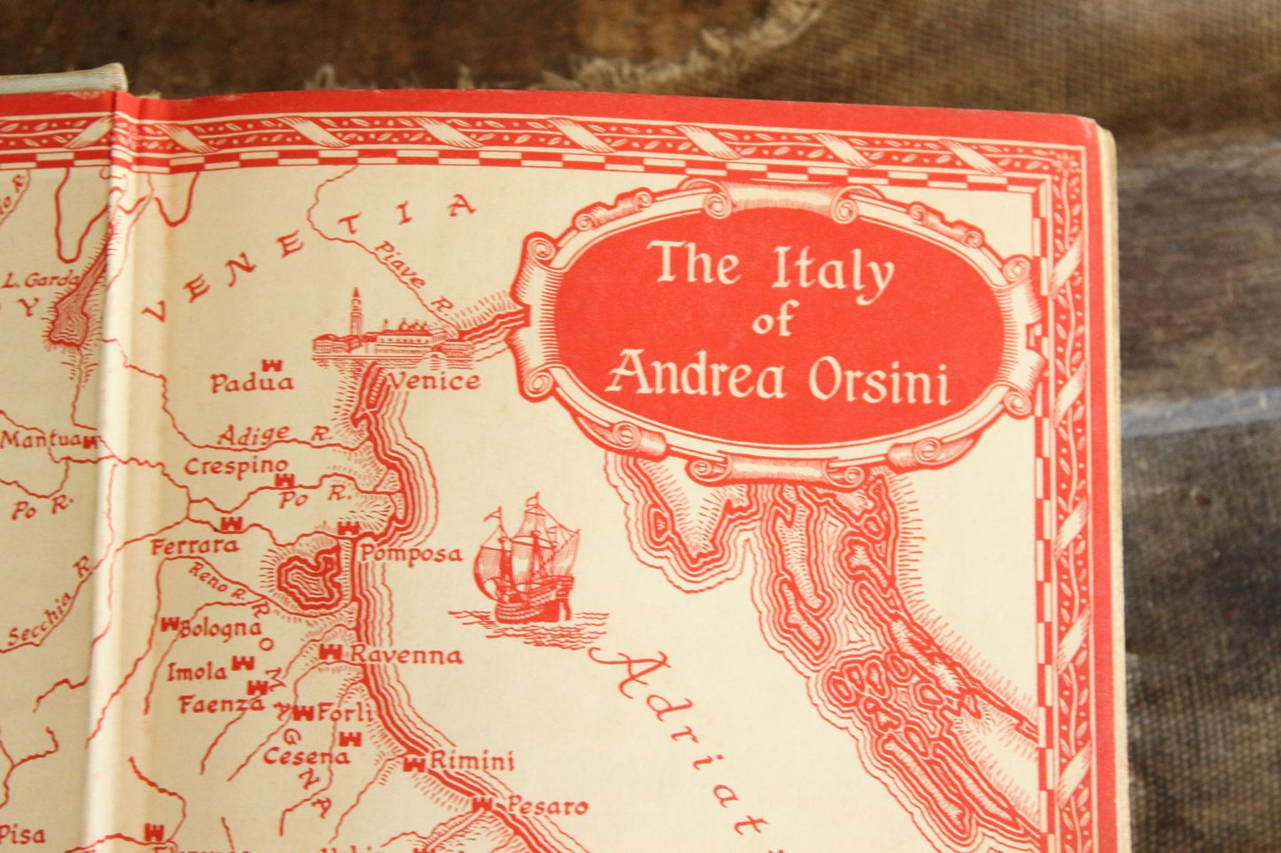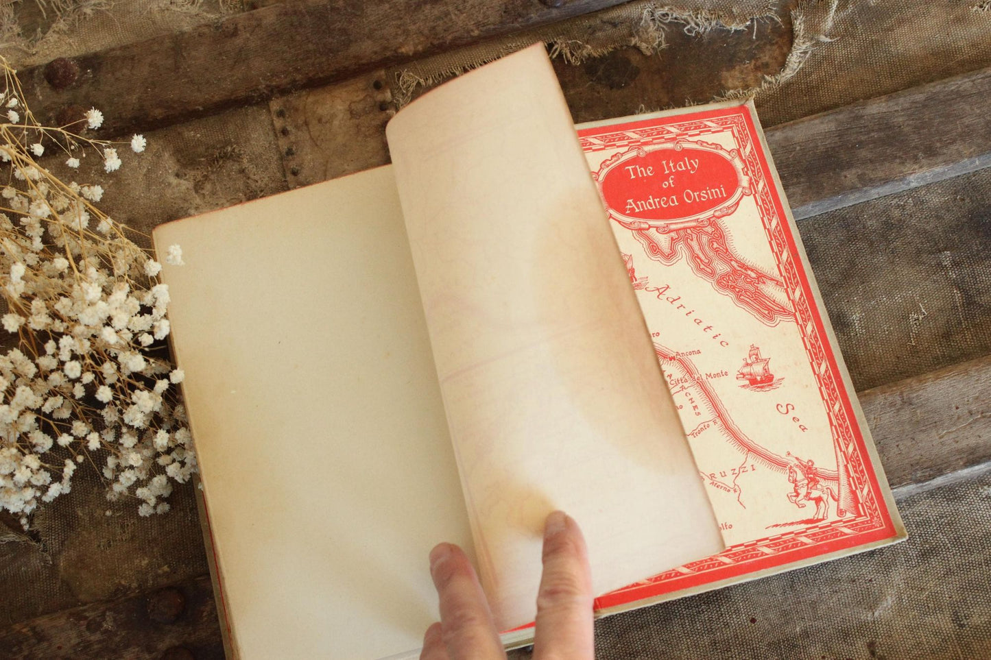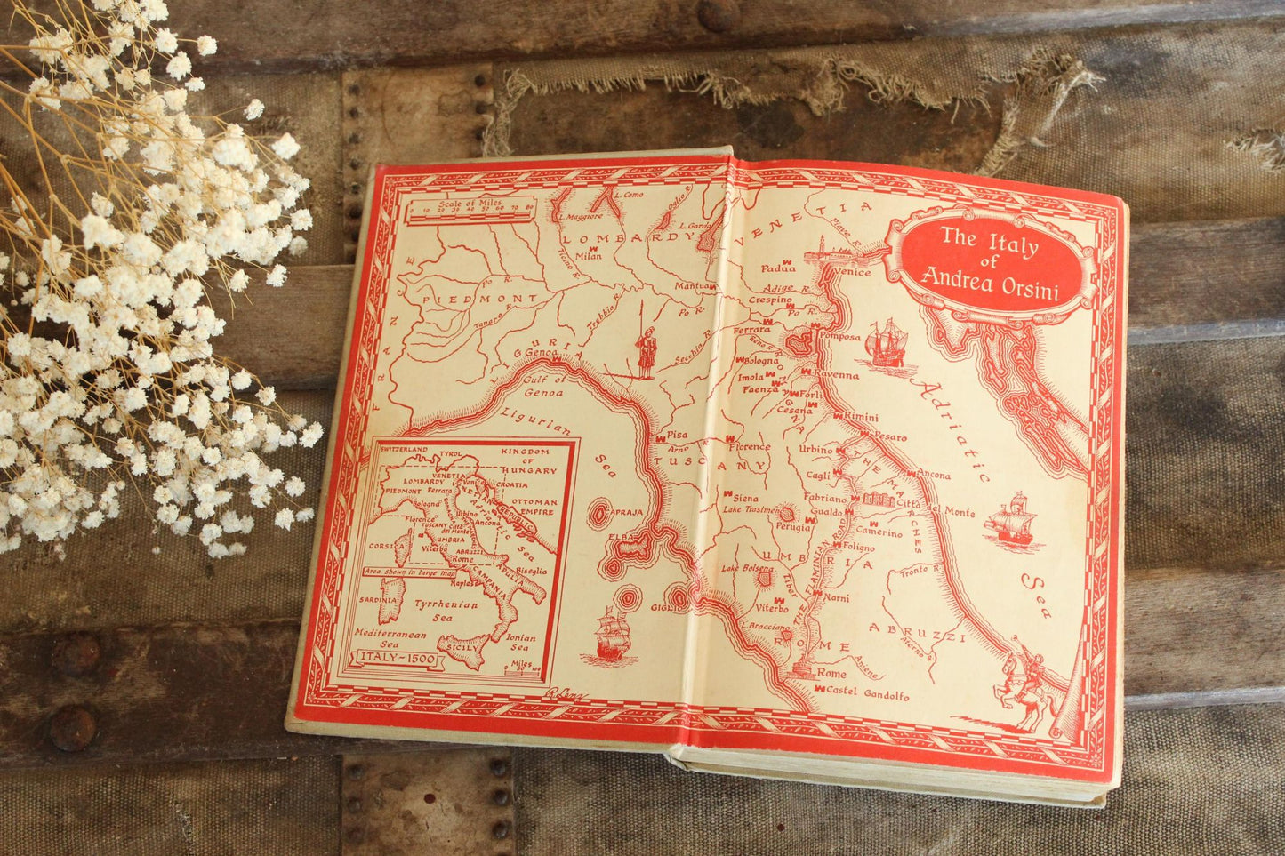 Beautiful vintage book, "Prince of Foxes", by Samuel Shellabarger, published in 1947 by Little Brown and Company. Beige gray cloth bound with red lettering on the spine. Red map on endpapers. Measures about 8" by 5.5". 433 pages. Suspected first edition.