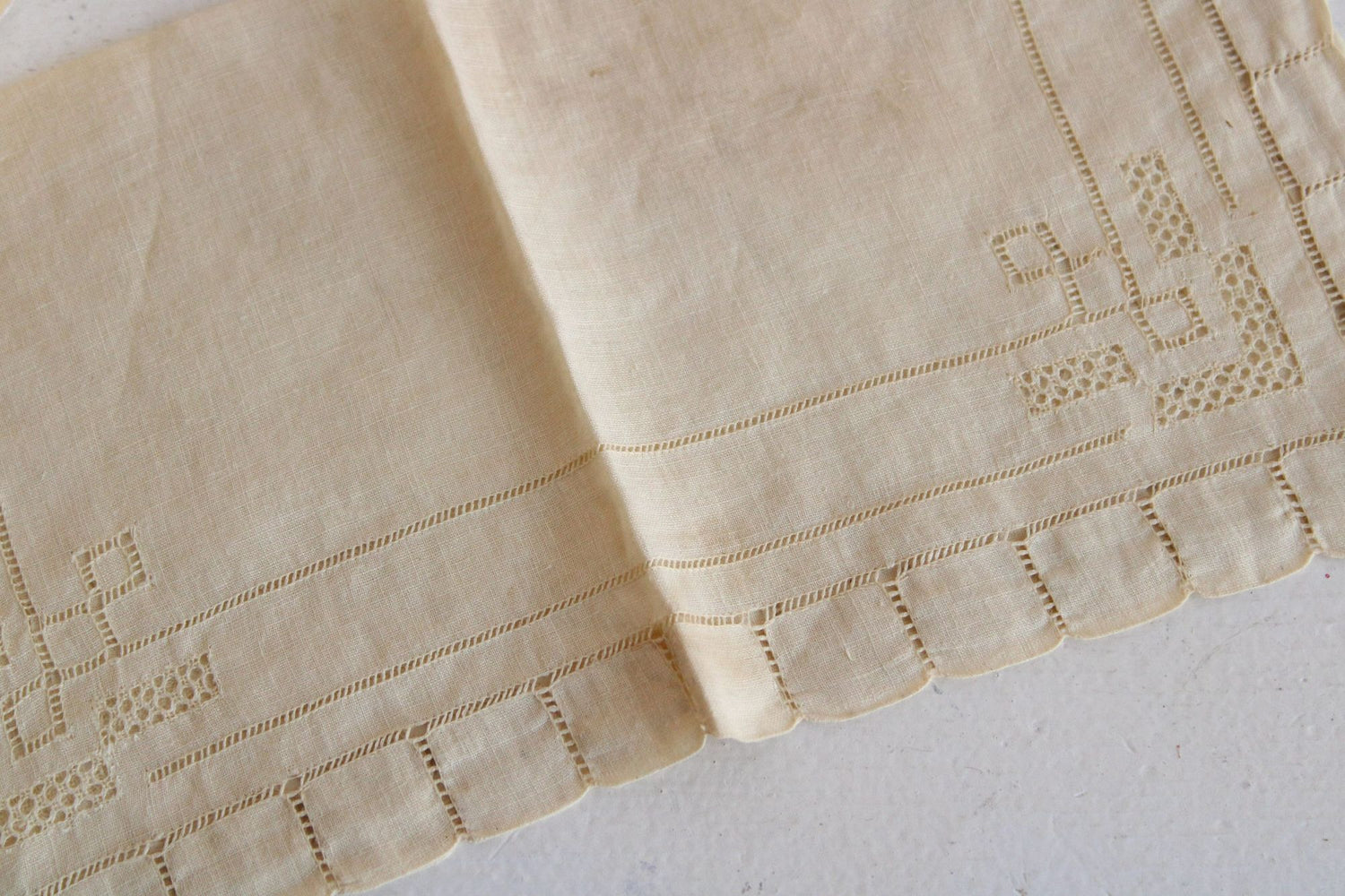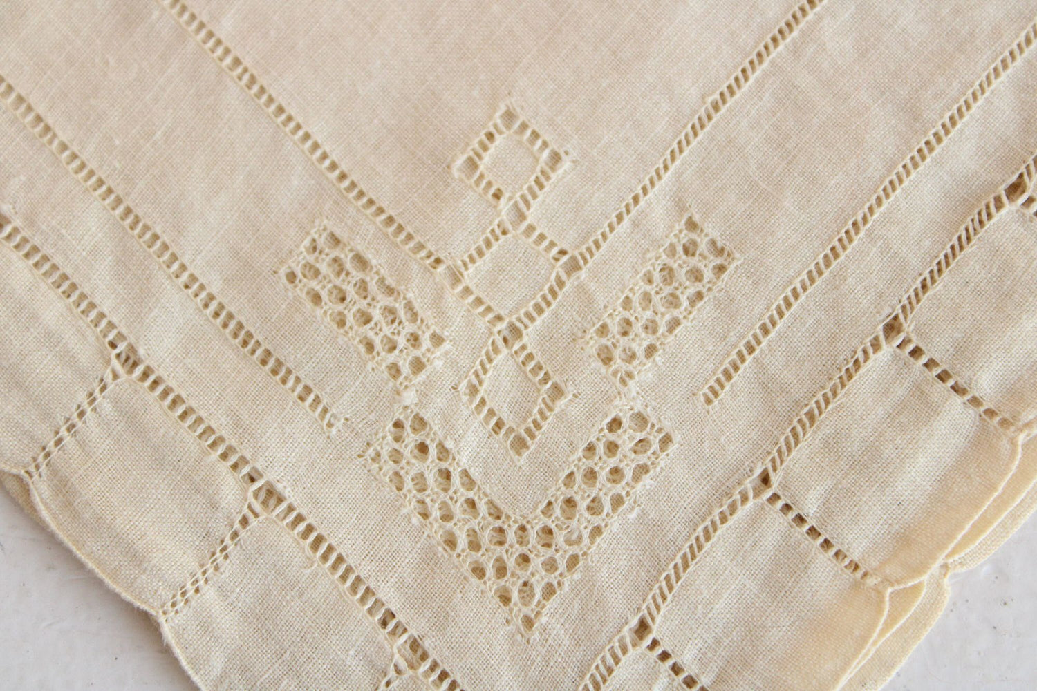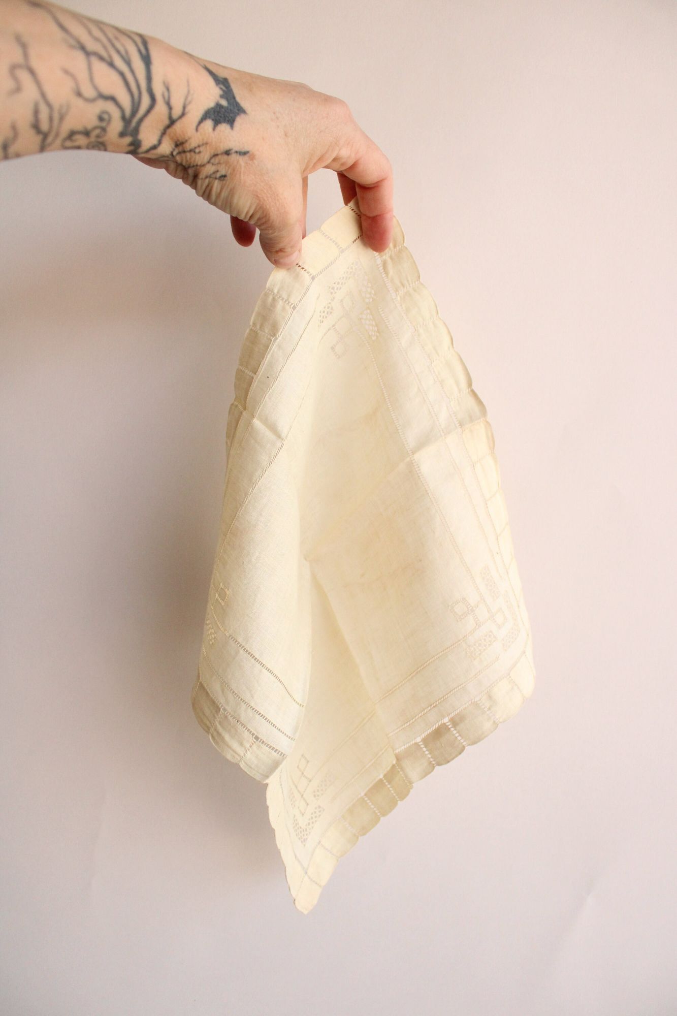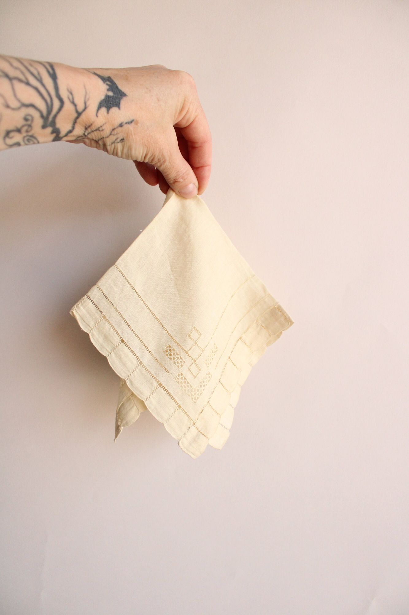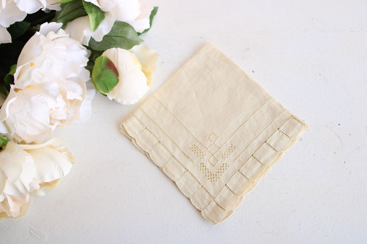 Vintage 1940s Ivory Linen Natural Plant Hand Dyed Hankie