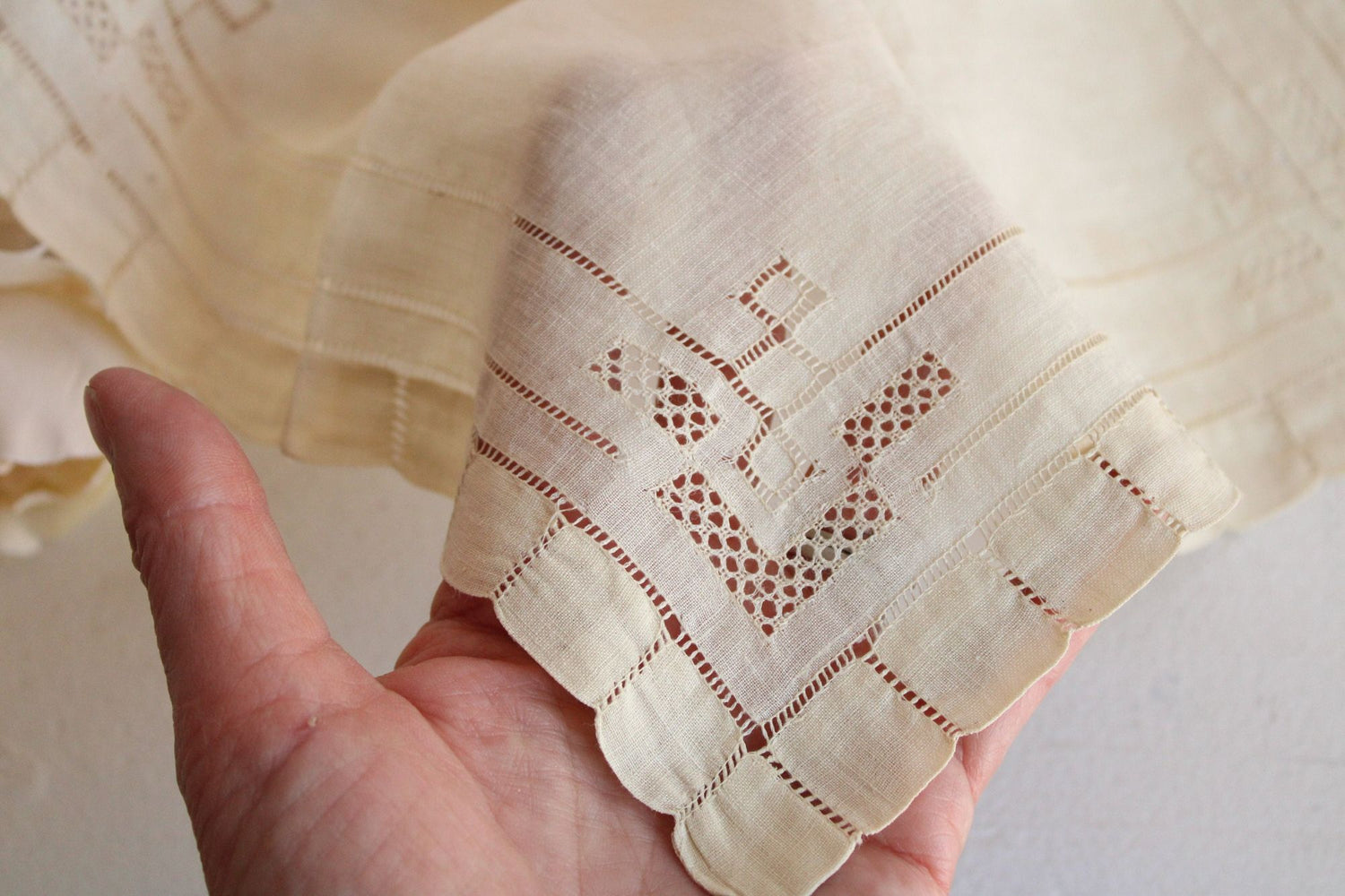 I use natural botanical dyes I make myself from locally sourced plant and spice materials to create one of a kind and unique colors for my hand dyed items. Slight irregularities (and more so in these vintage items due to their age and previous lives) in shading and tone are to be expected and all part of their unique charm.