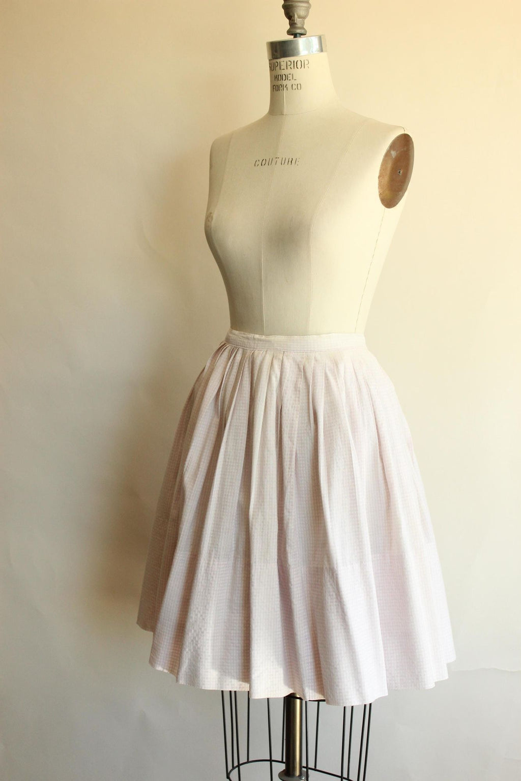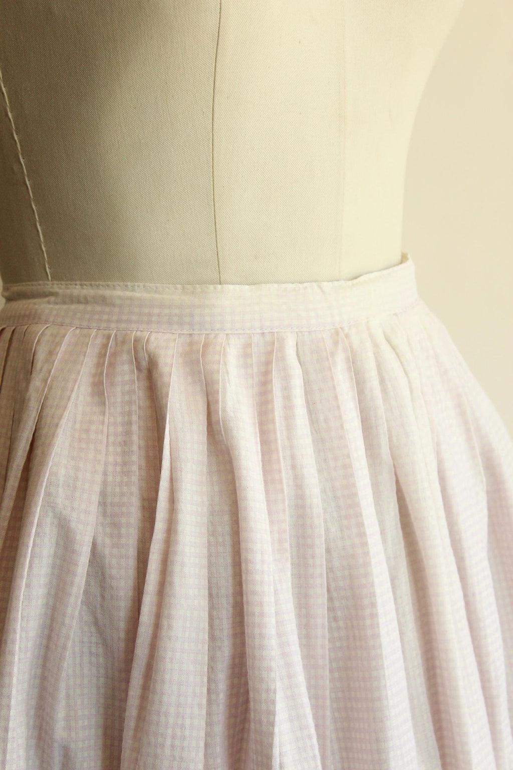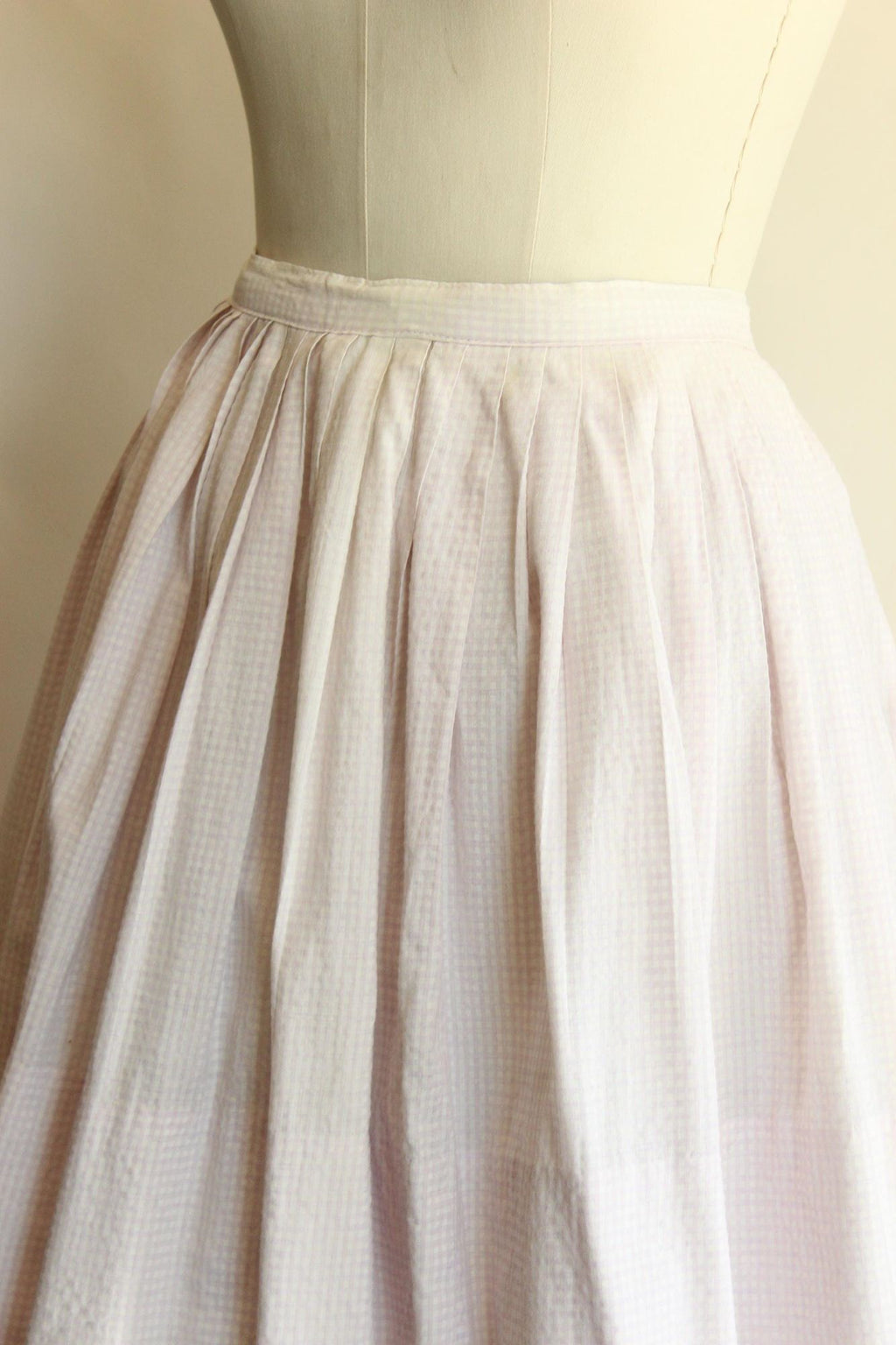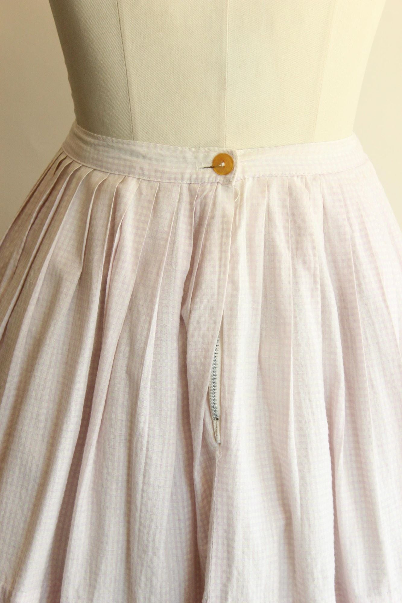 Utterly charming full skirt from the 1950s in a sweet lavender purple and white gingham check. Beautifully pleated all the way round the waist. Metal zipper and a button at the top in back. Label reads: Fritzi of California. In the medium range I'd say, but do see measurements below.