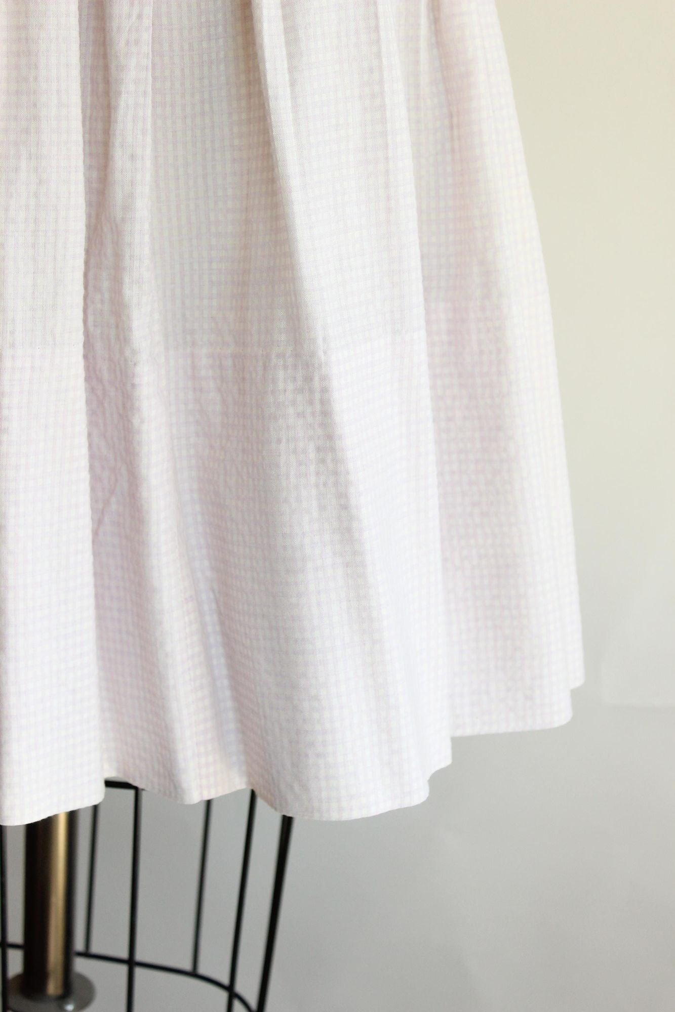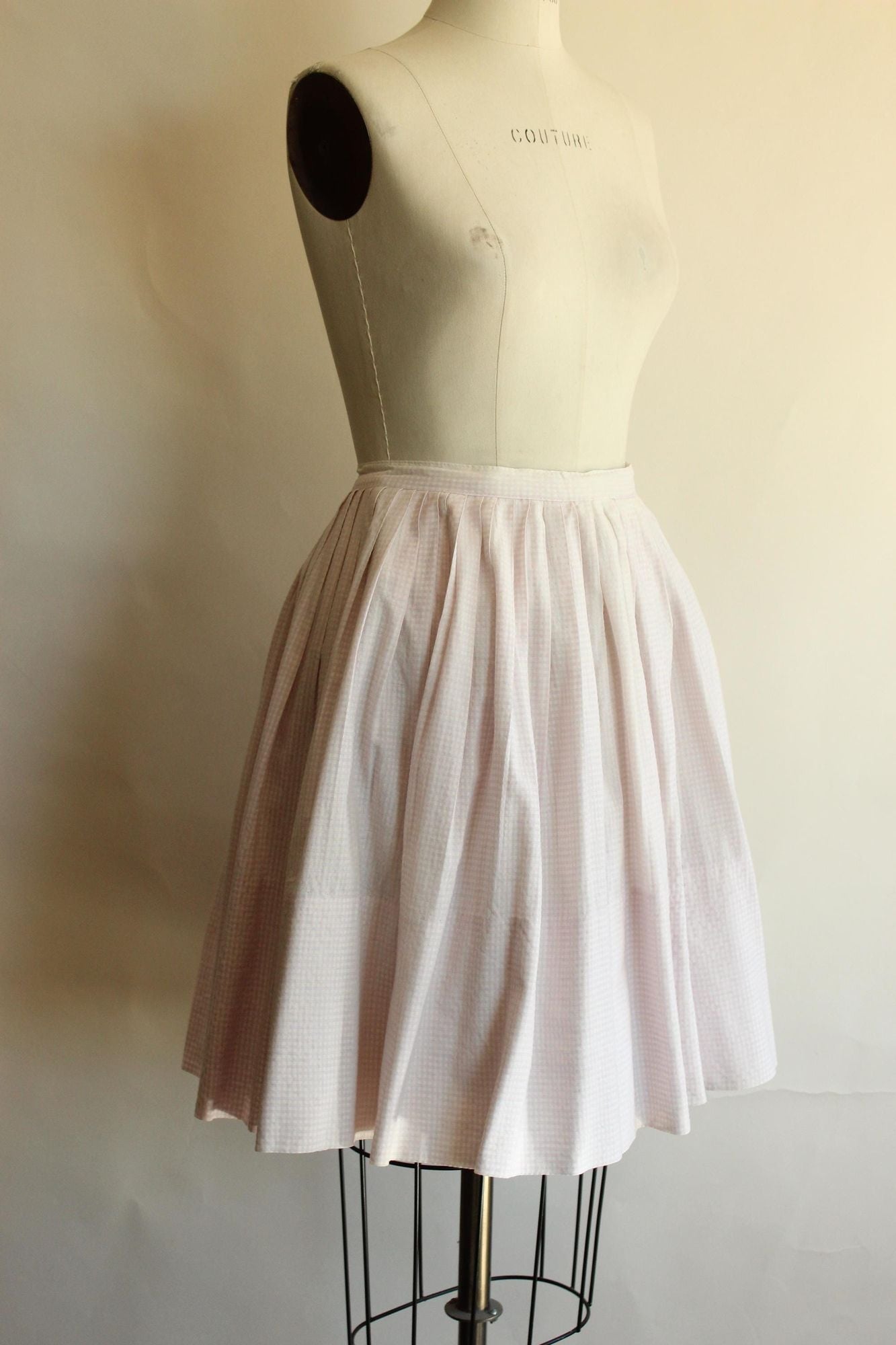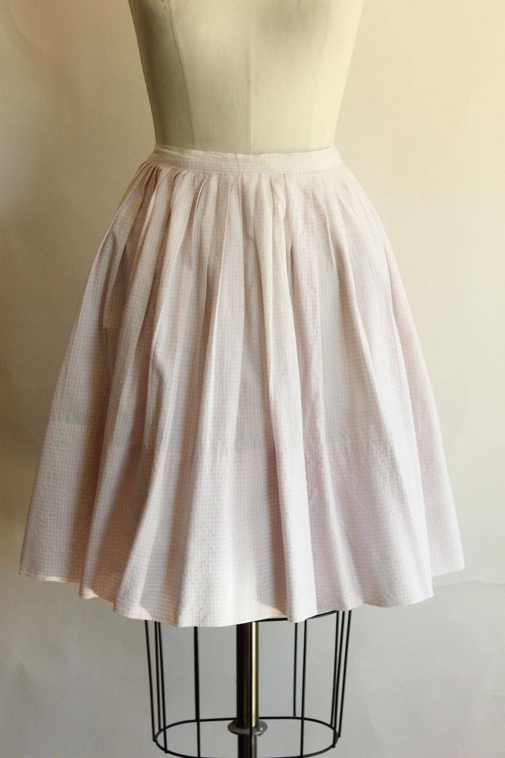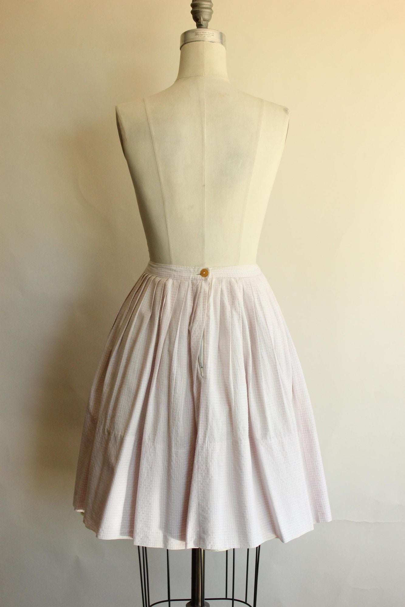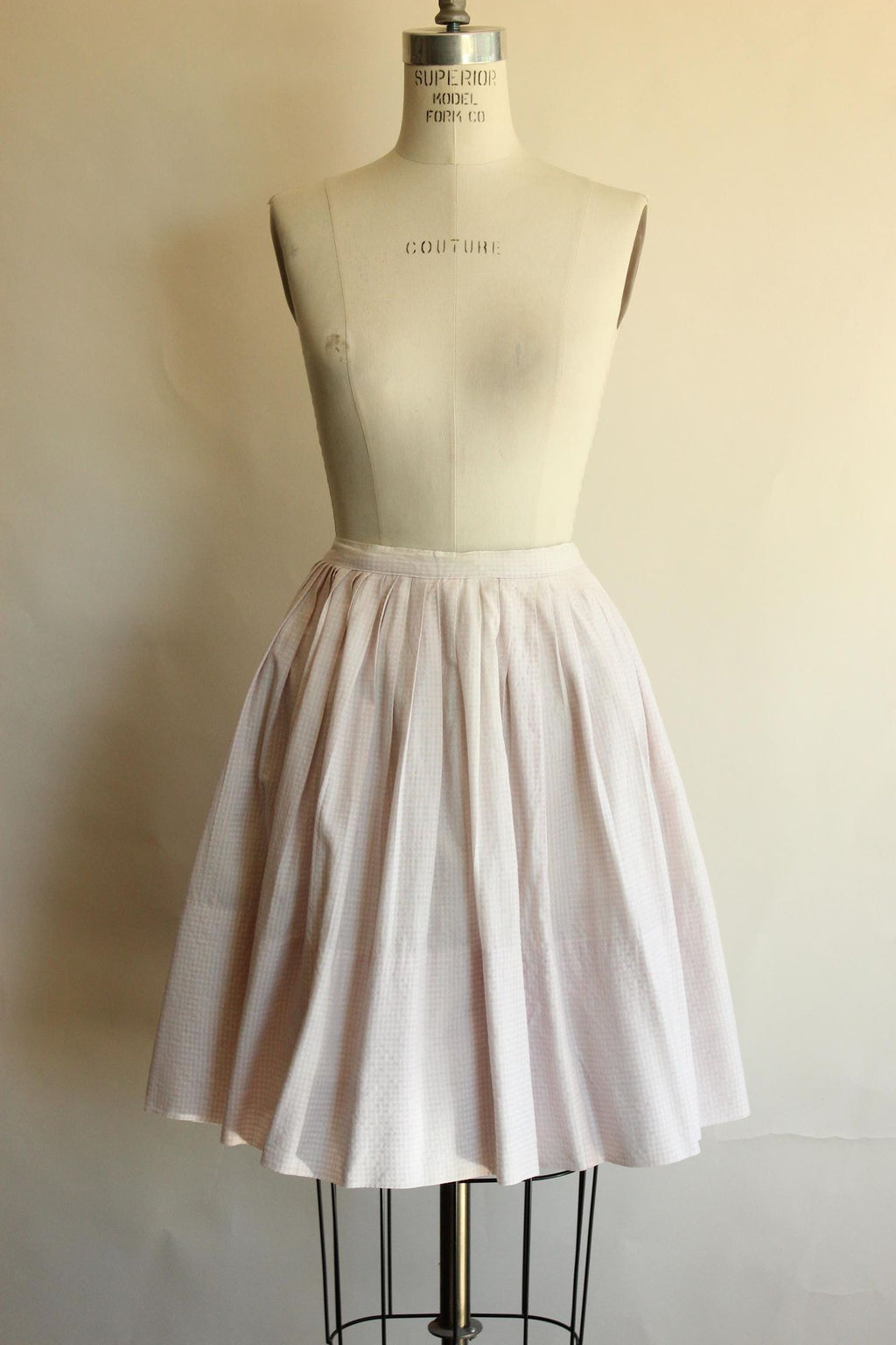 Utterly charming full skirt from the 1950s in a sweet lavender purple and white gingham check. Beautifully pleated all the way round the waist. Metal zipper and a button at the top in back. Label reads: Fritzi of California. In the medium range I'd say, but do see measurements below.