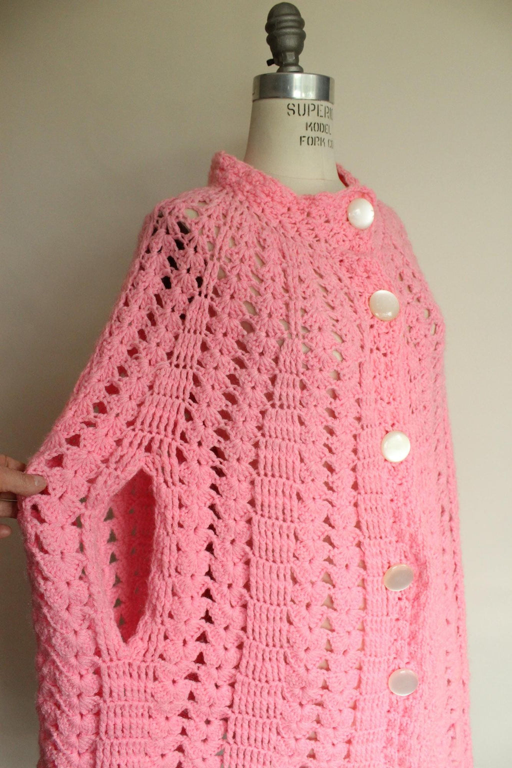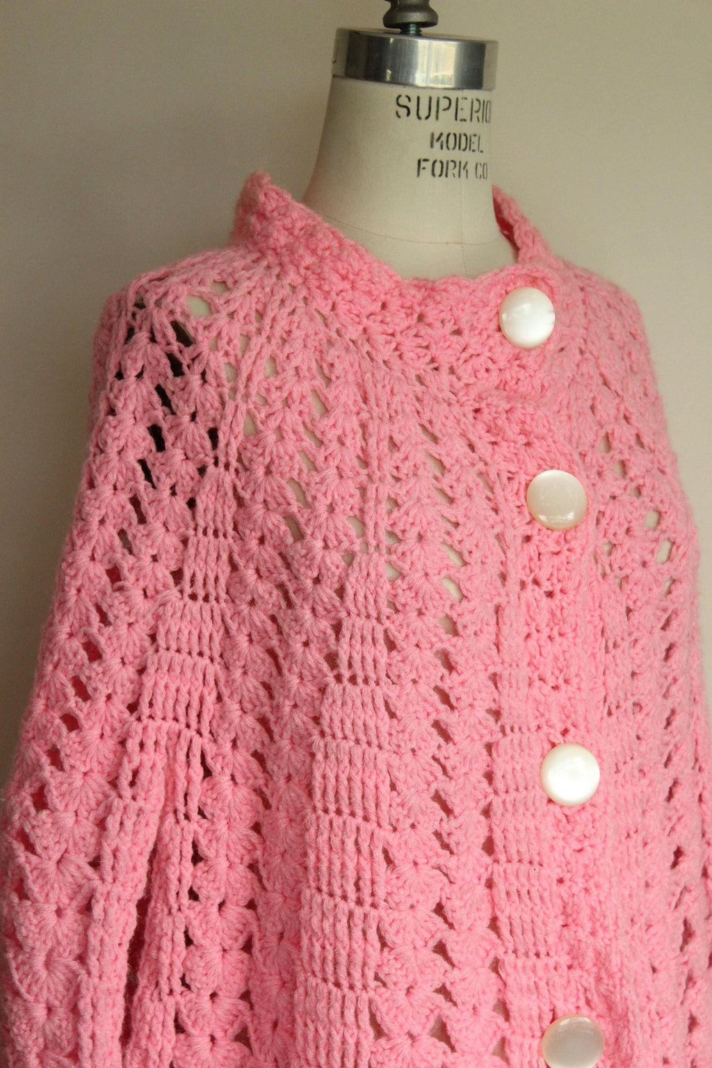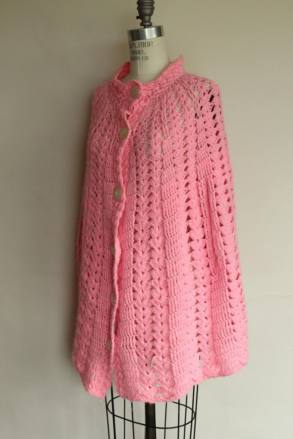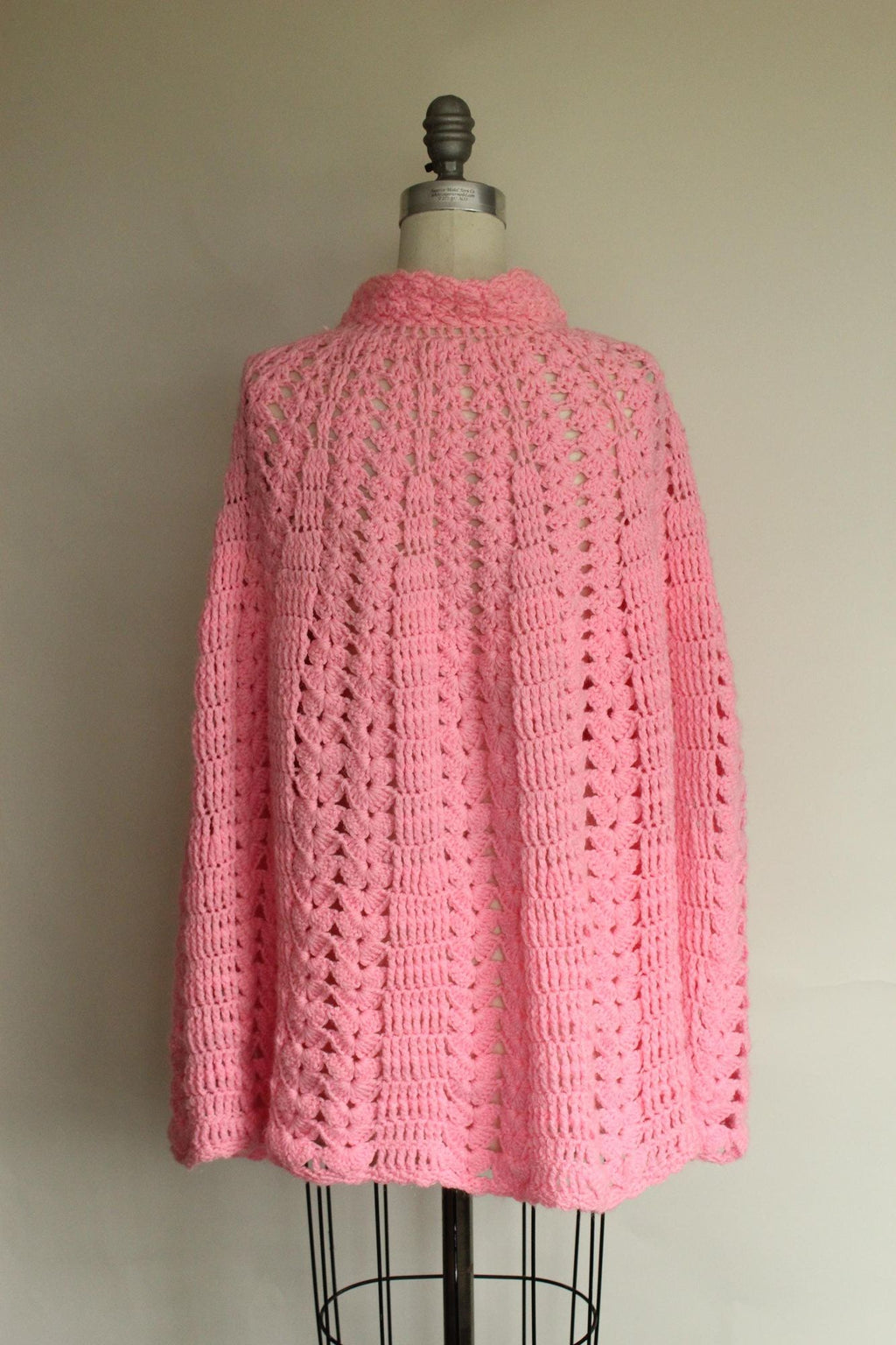 Vintage 1960s 1970s Pink Crochet Poncho Shawl
