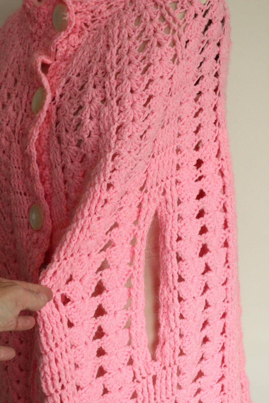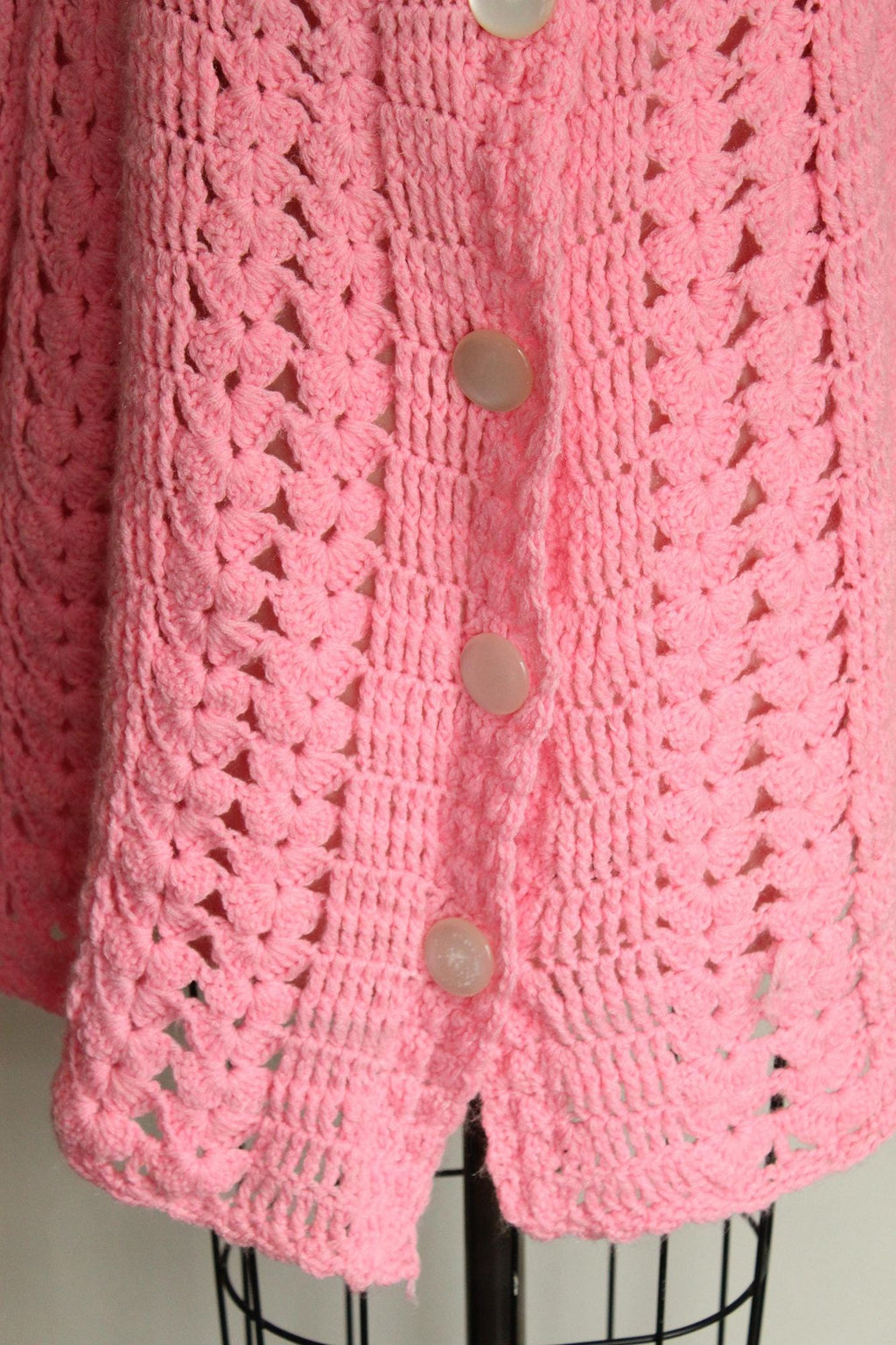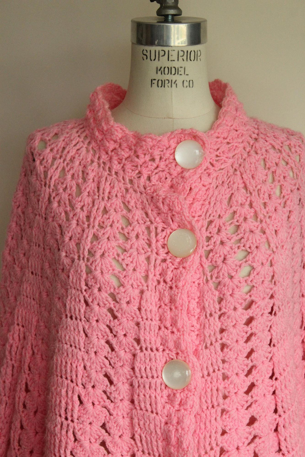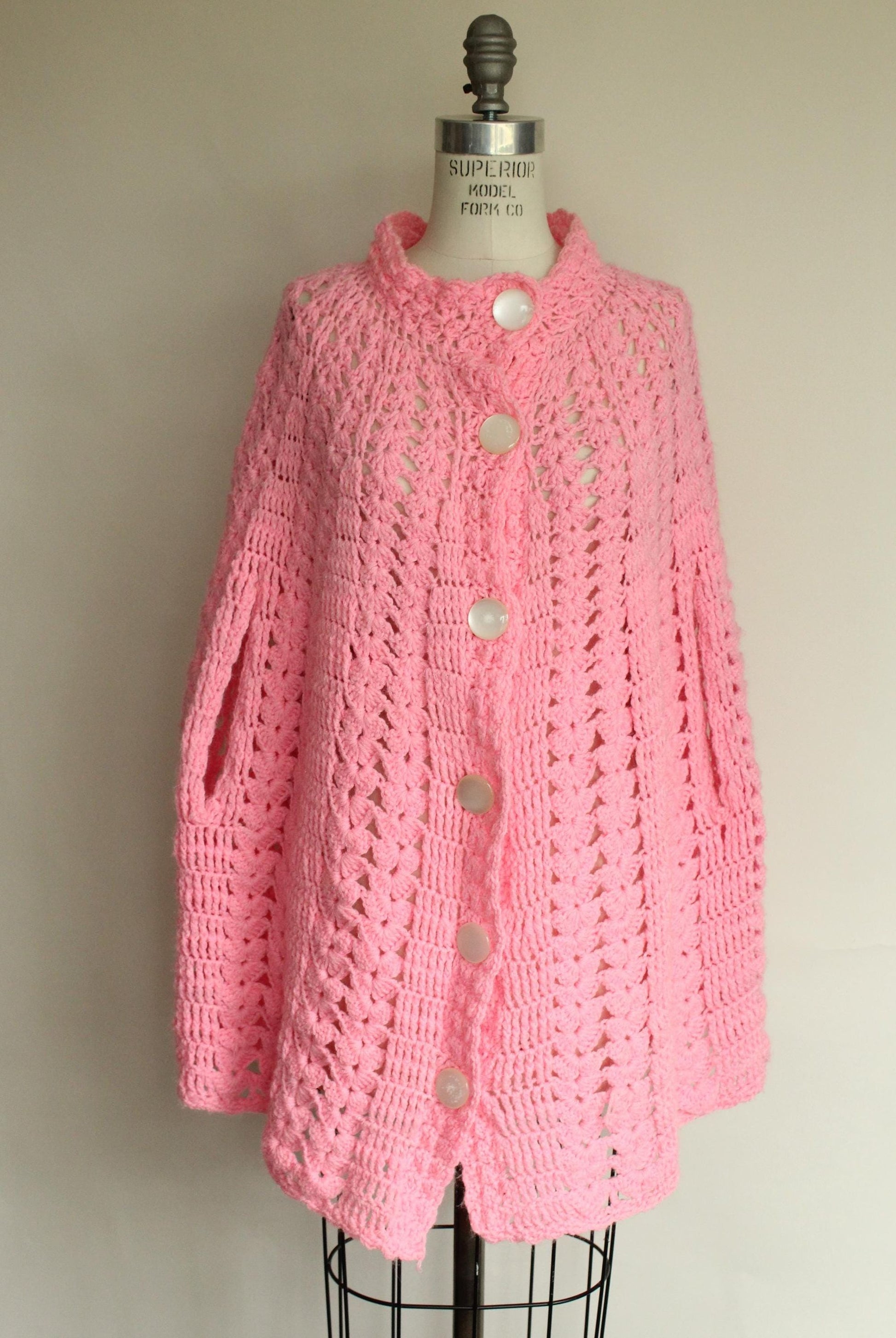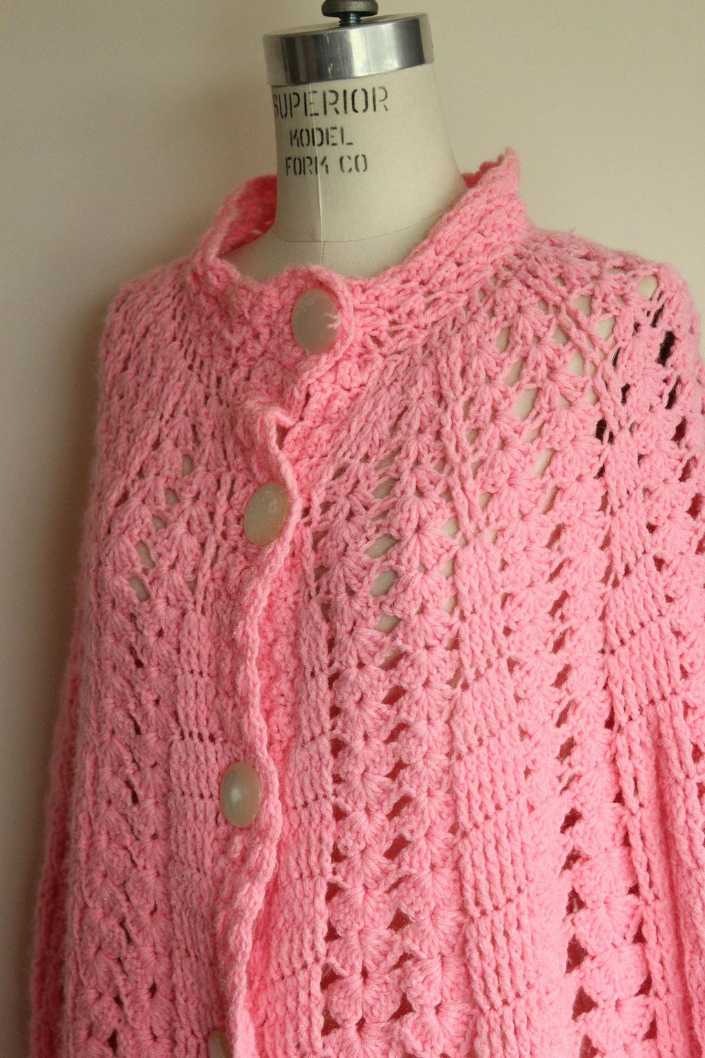 Vintage 1960s 1970s Pink Crochet Poncho Shawl