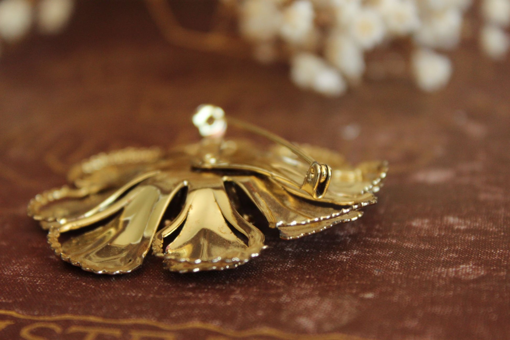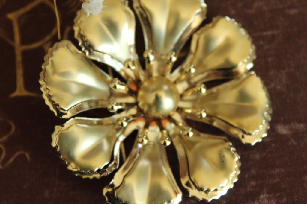 Vintage 1960s Flower in Gold Tone Metal Brooch