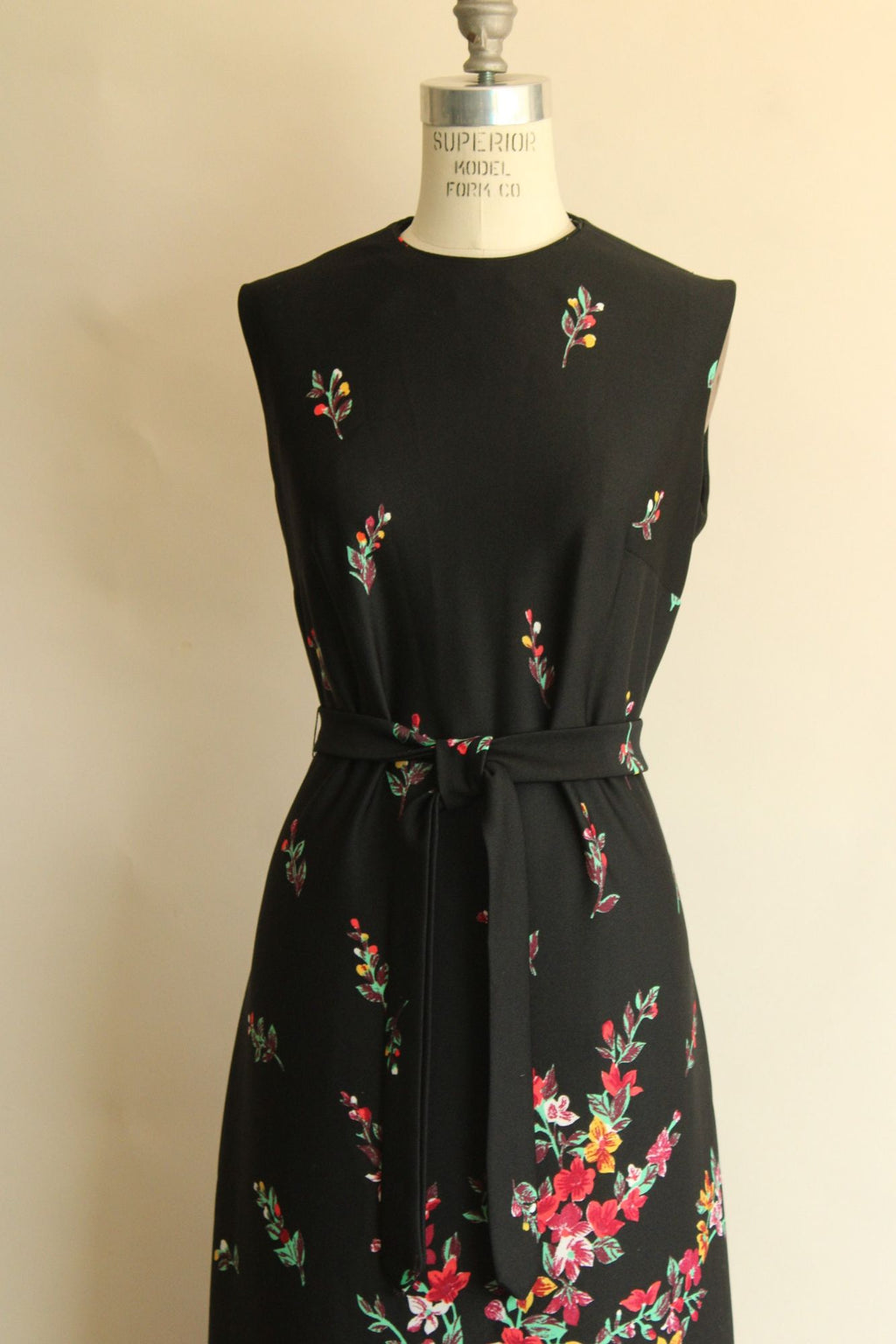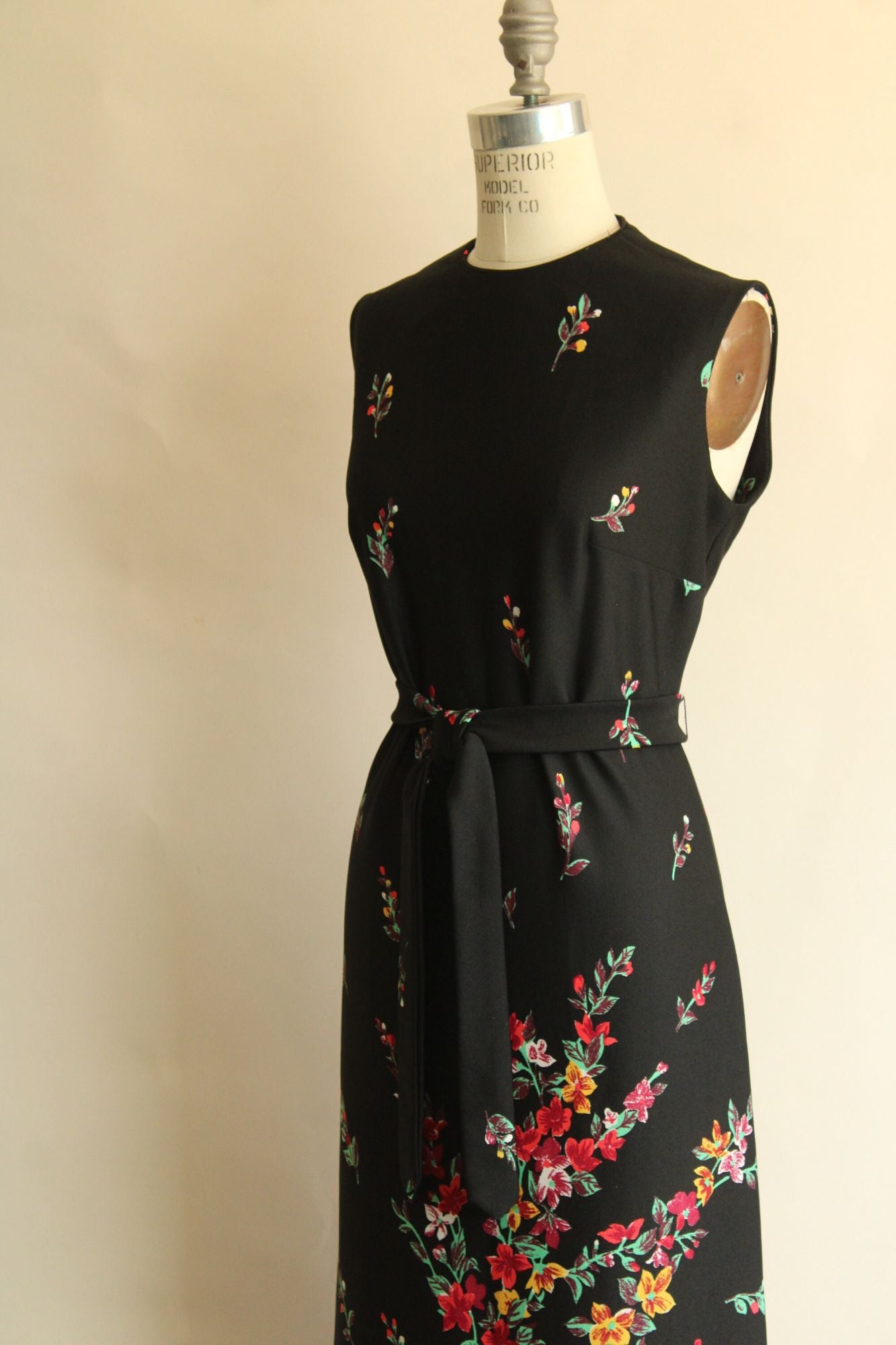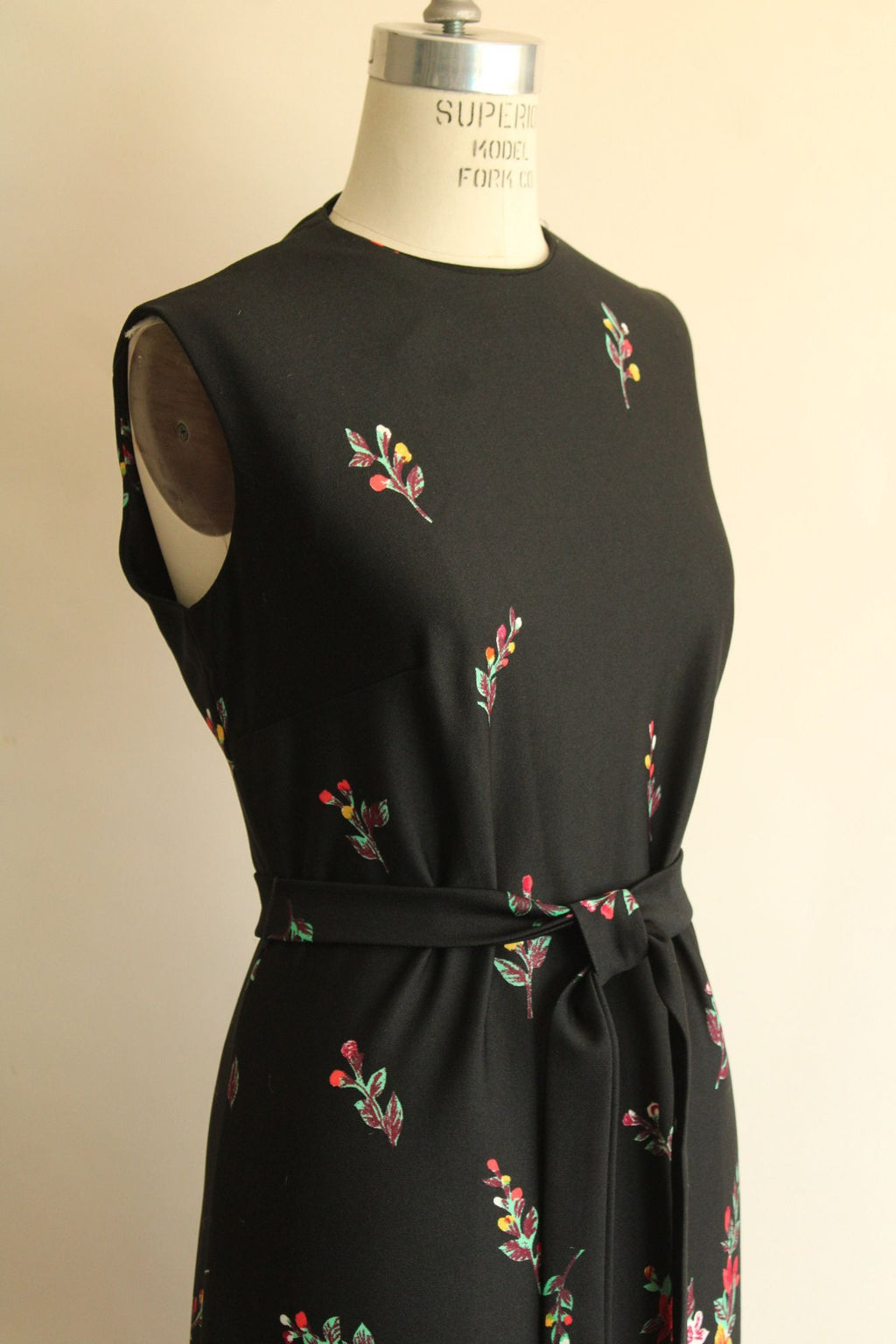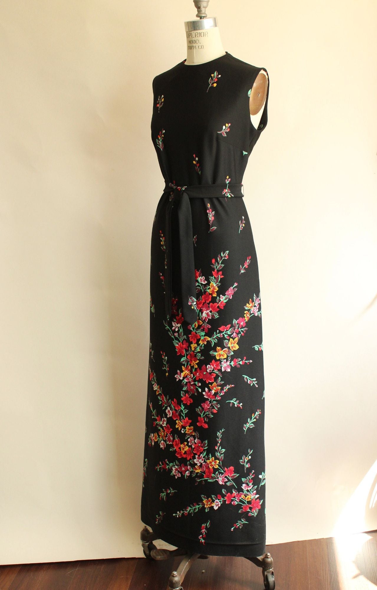 Vintage 1970s Lady Carol Black Floral Print Maxidress