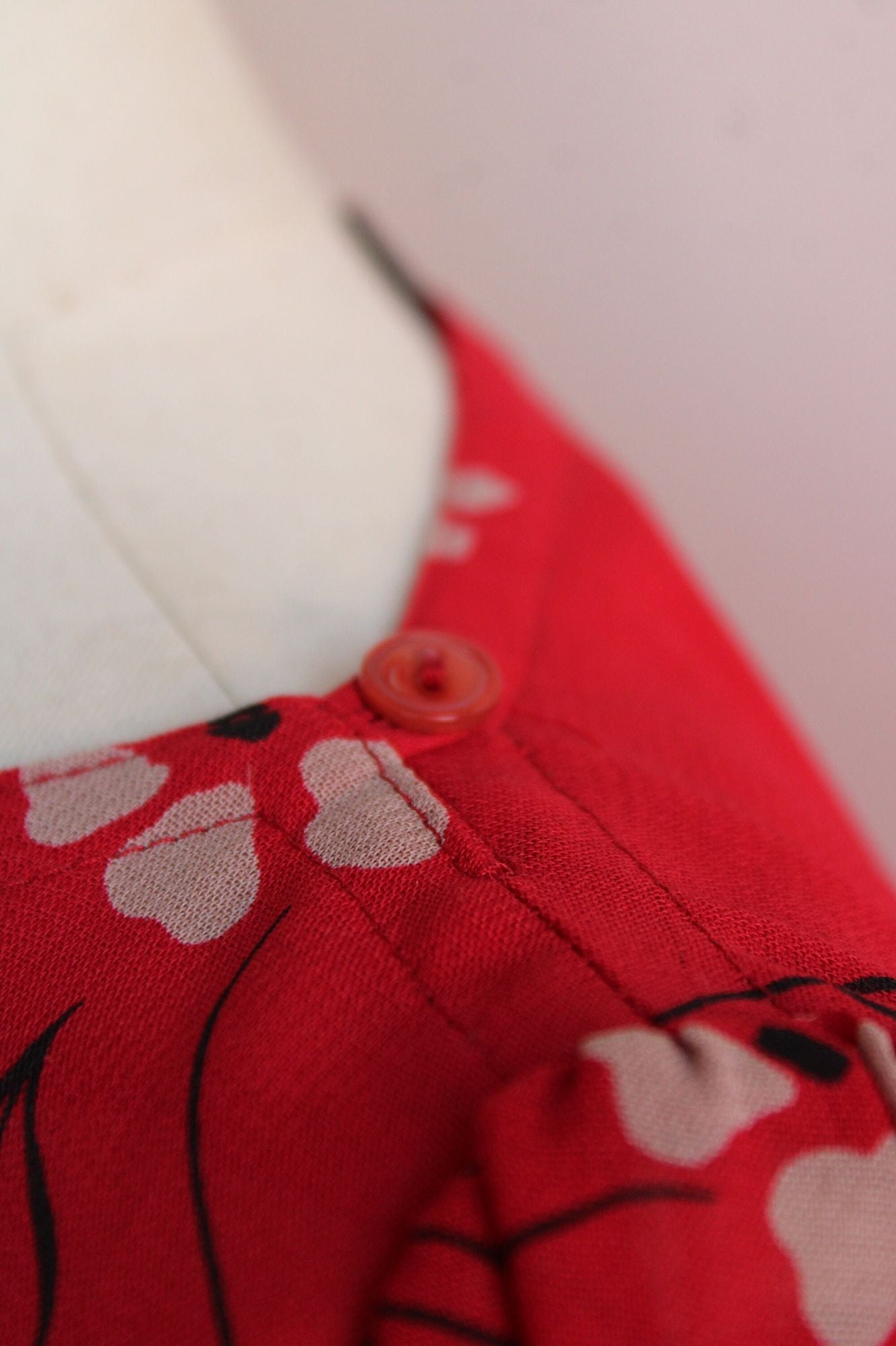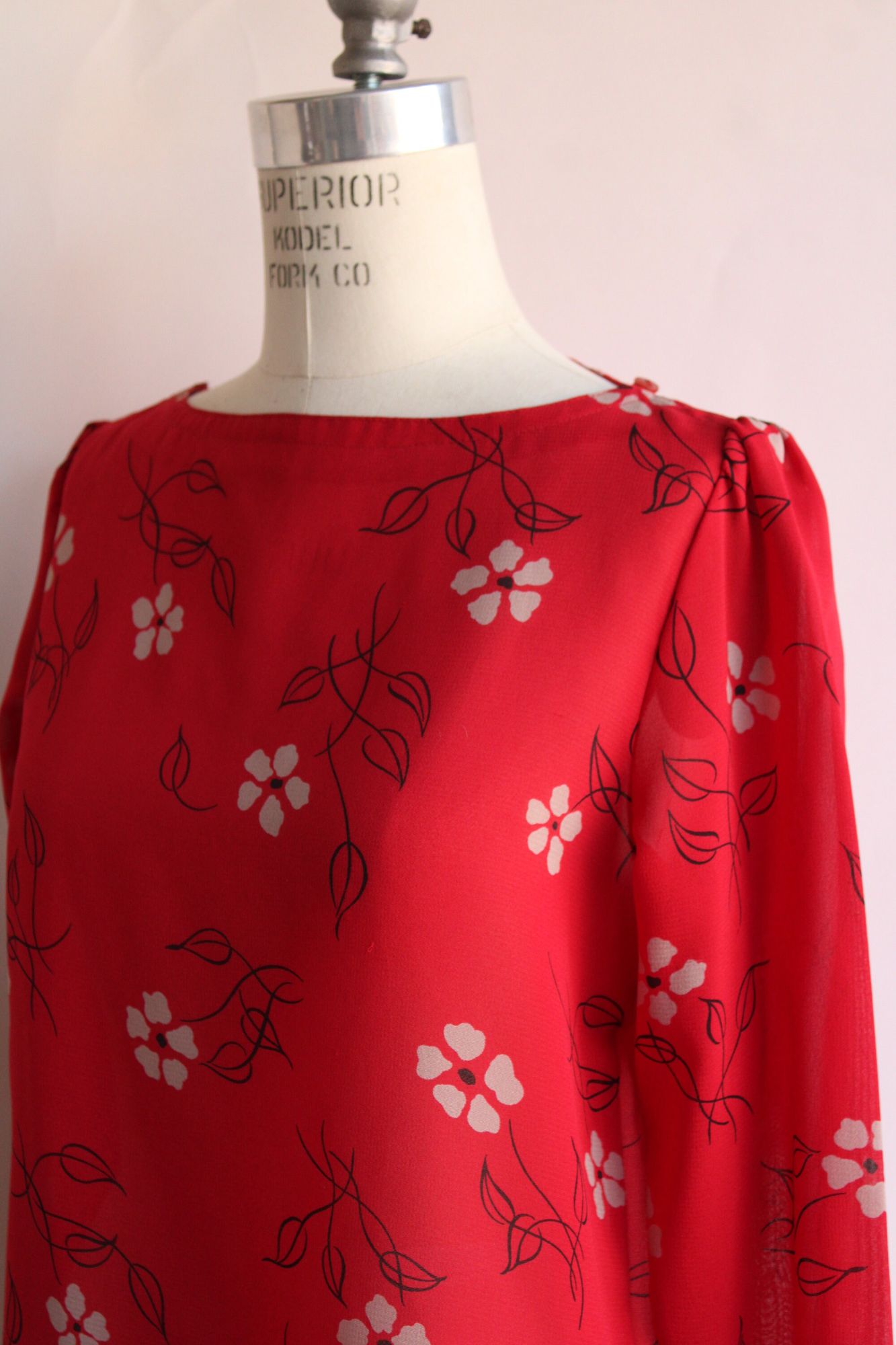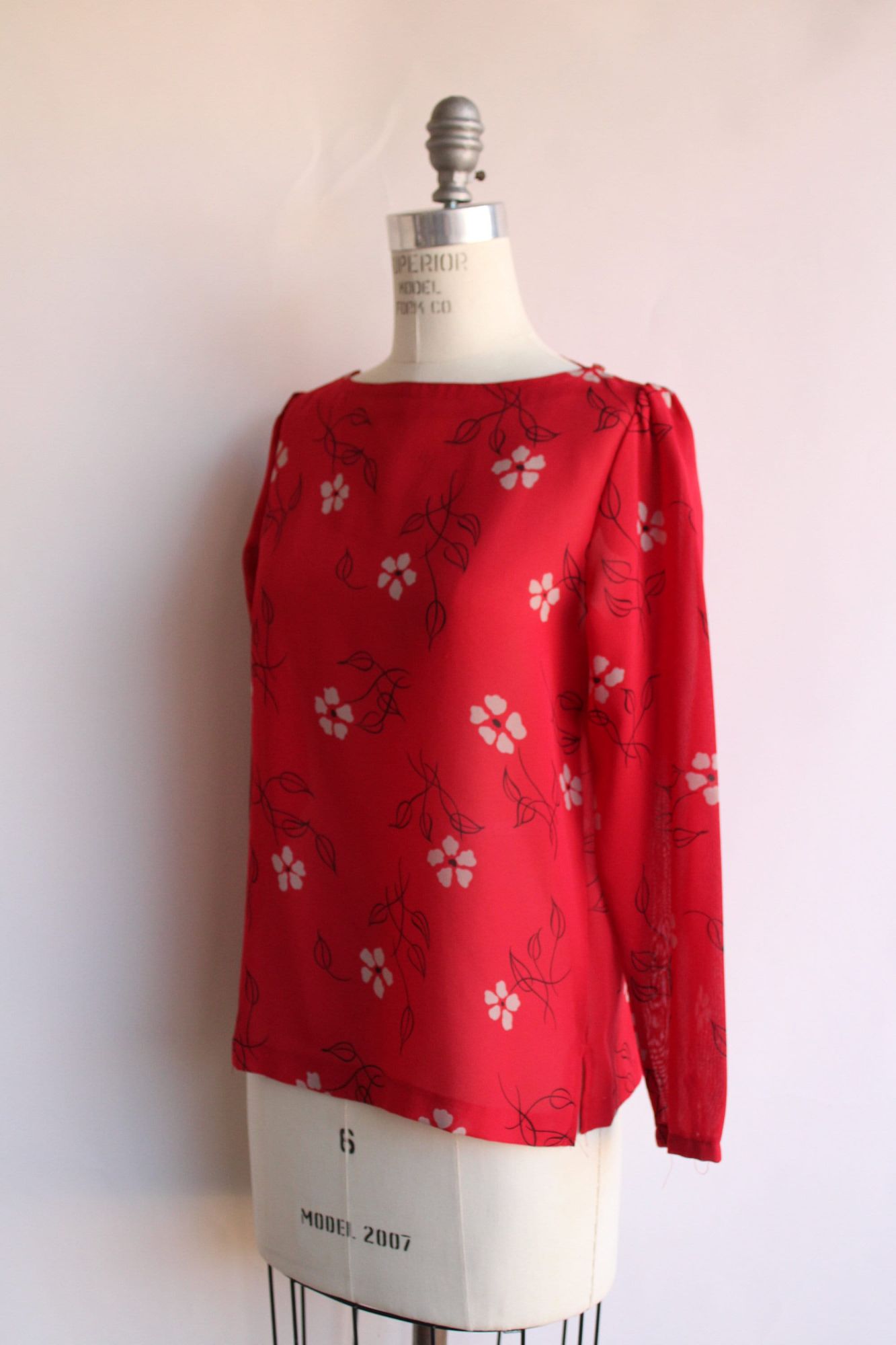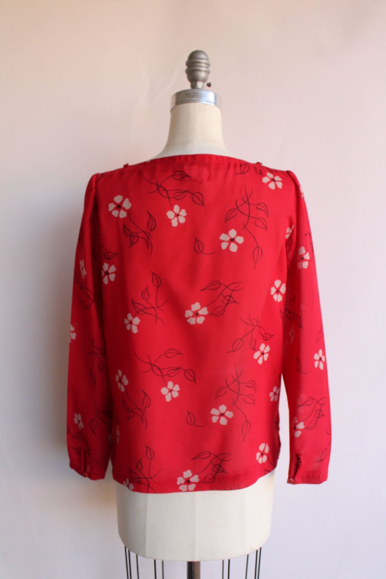 Vintage 1990s 2000s Red and White Floral Print Blouse