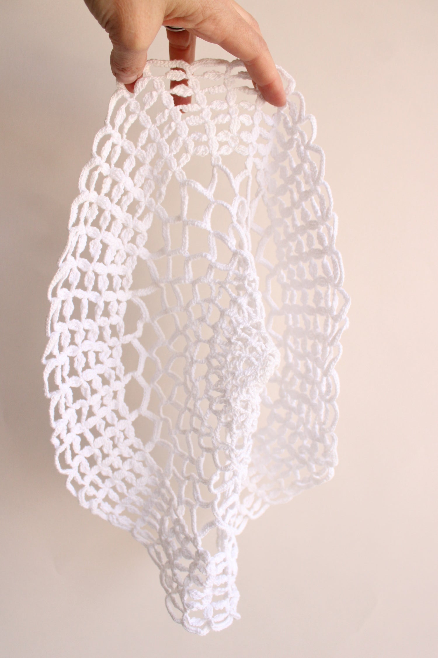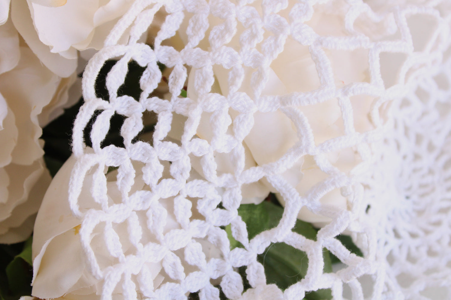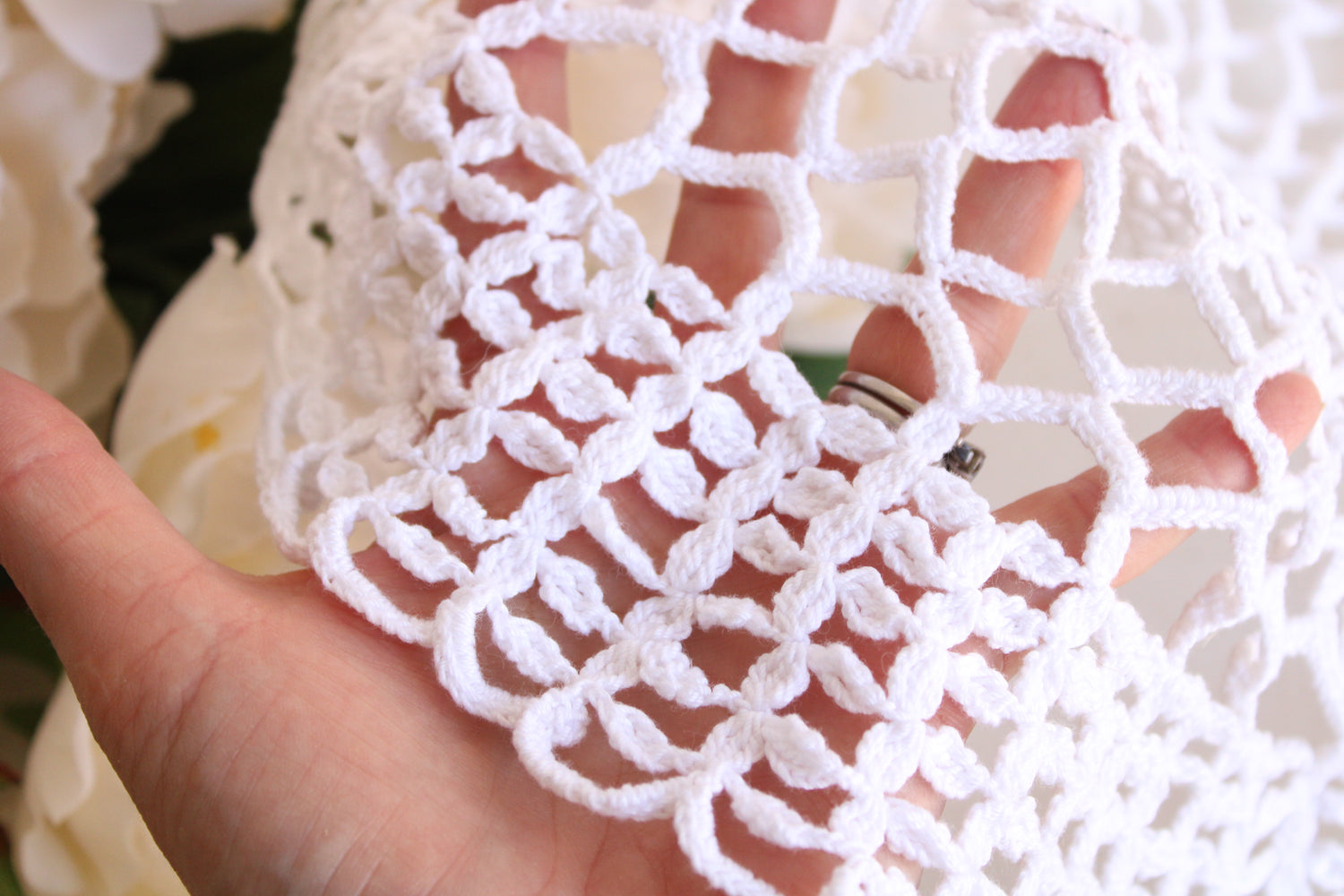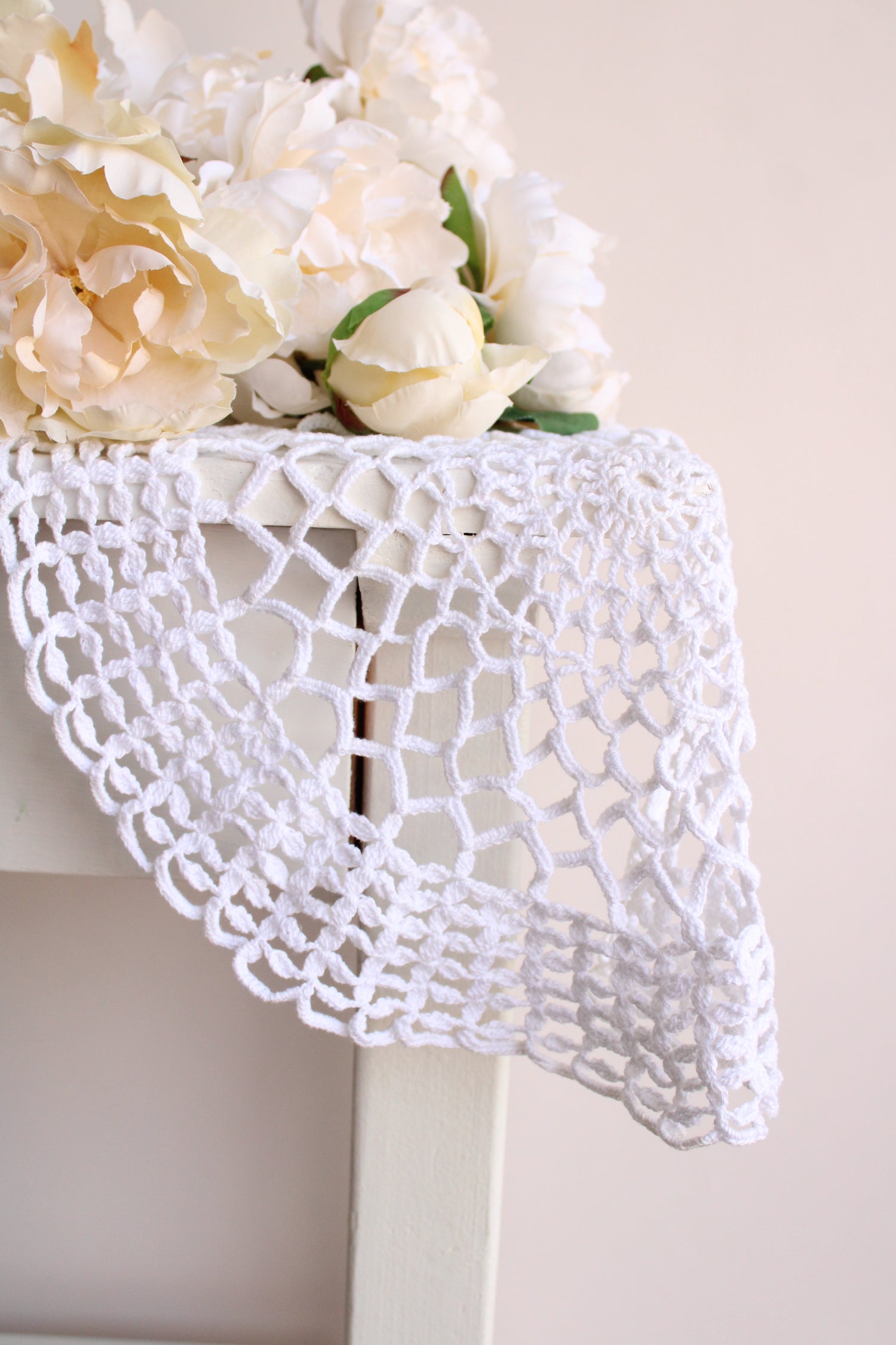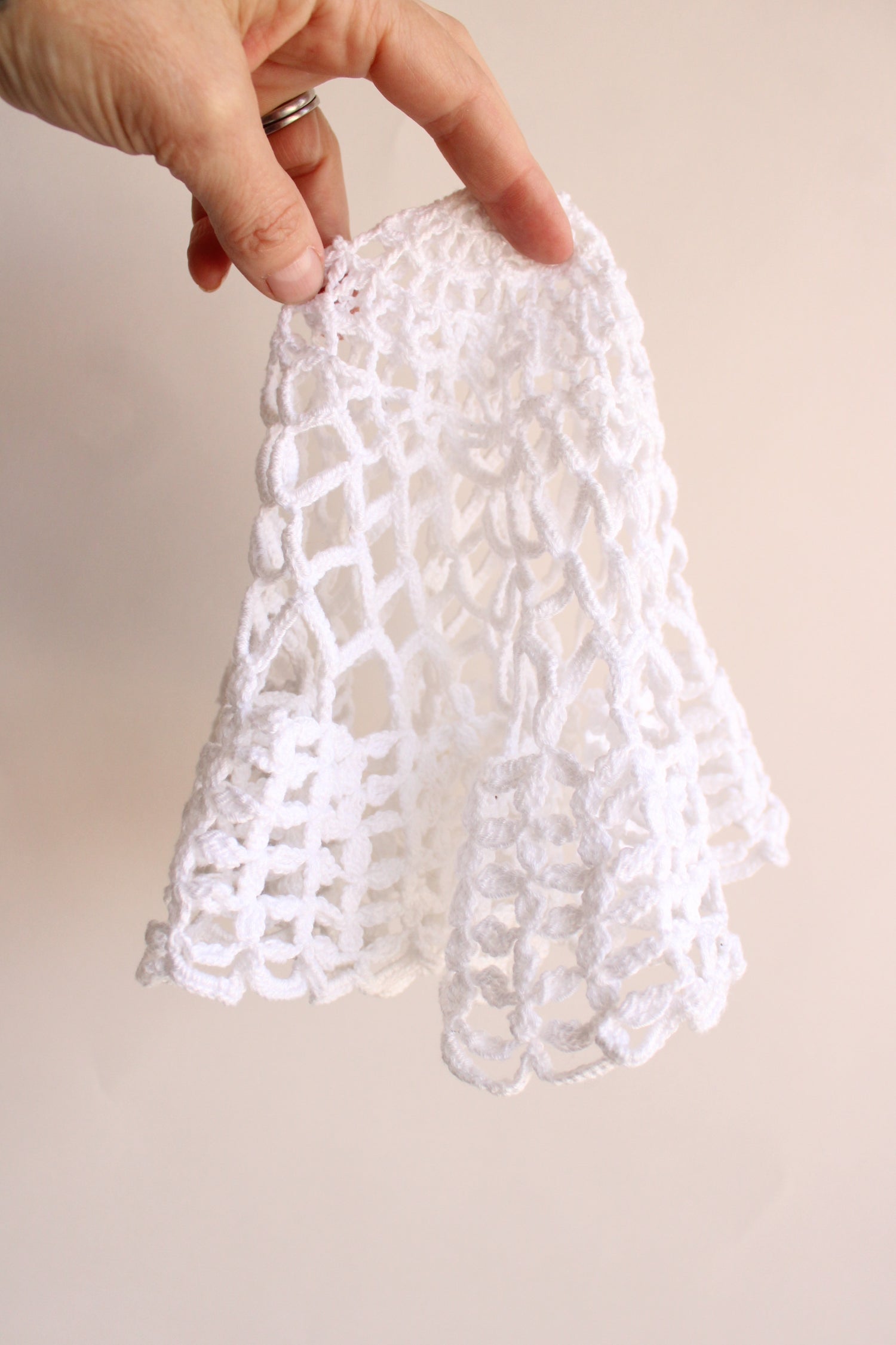 Simple vintage round white crocheted doily. Thicker weave. I believe this is circa 1960s. Looks and feels like a thick cotton or cotton blend.